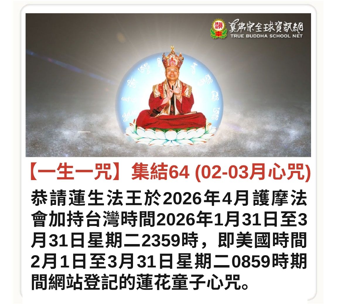 歡迎大家到真佛宗全球資訊網繼續登記蓮花童子心咒(鏈接: