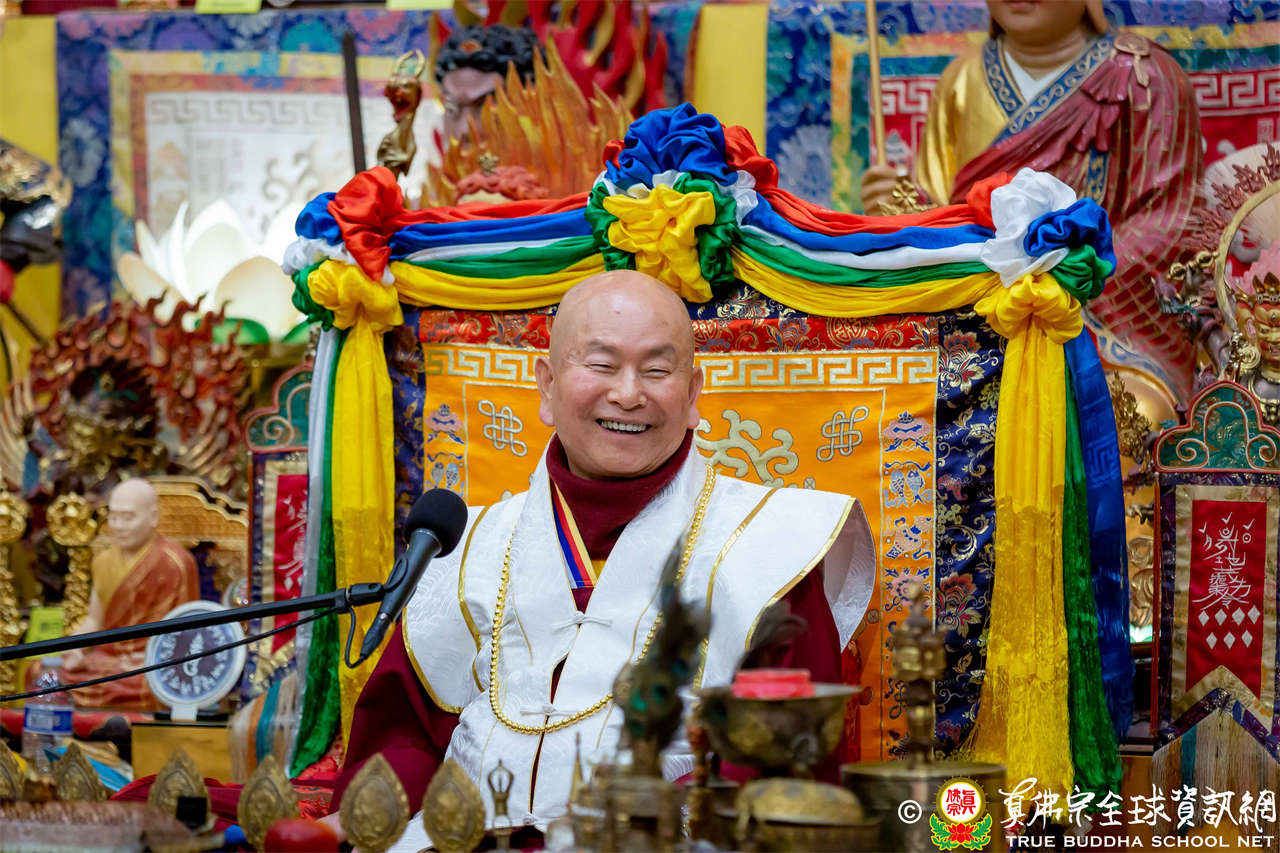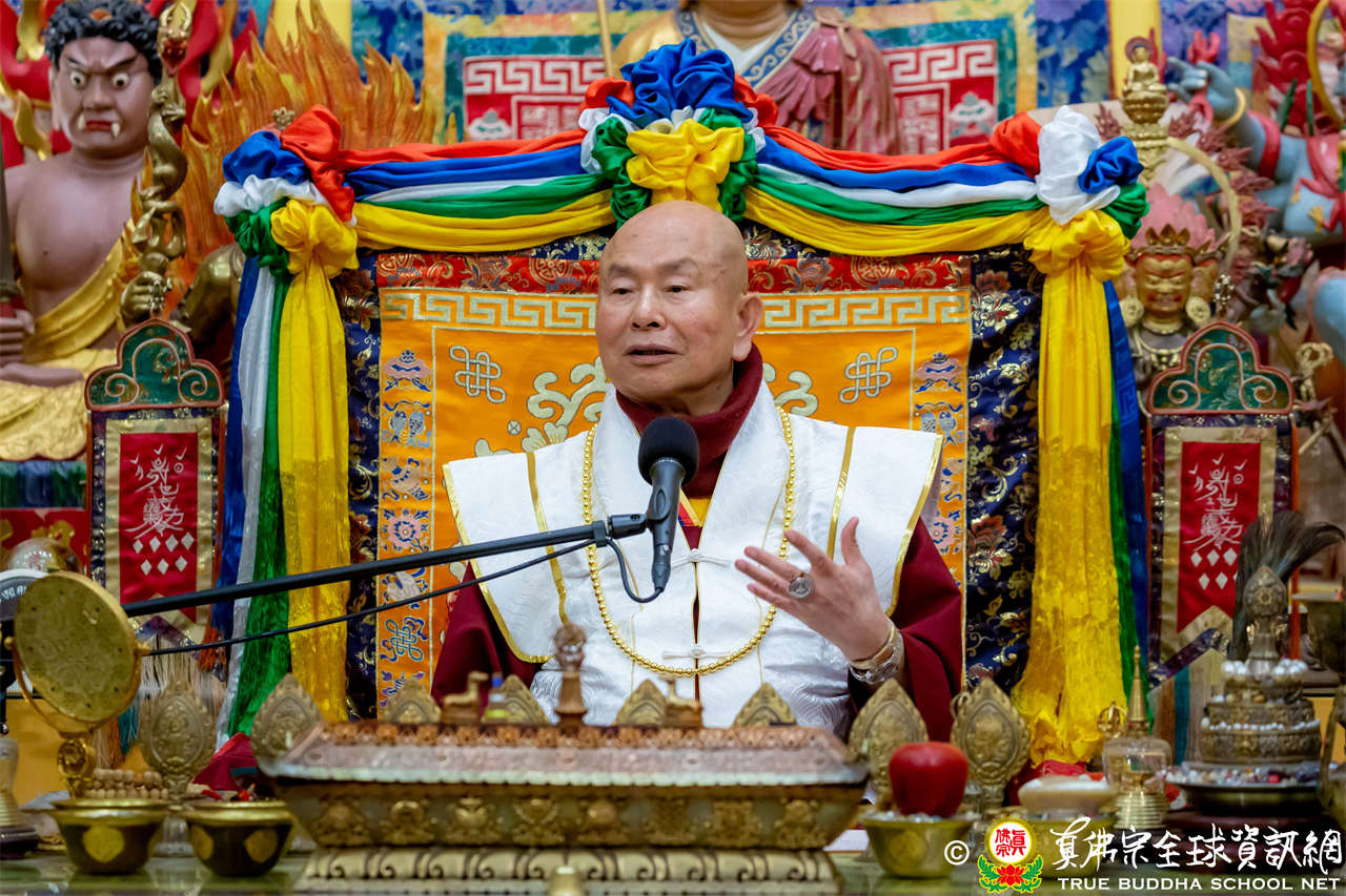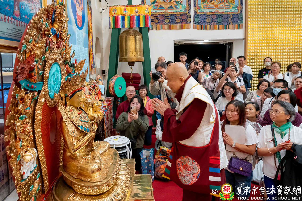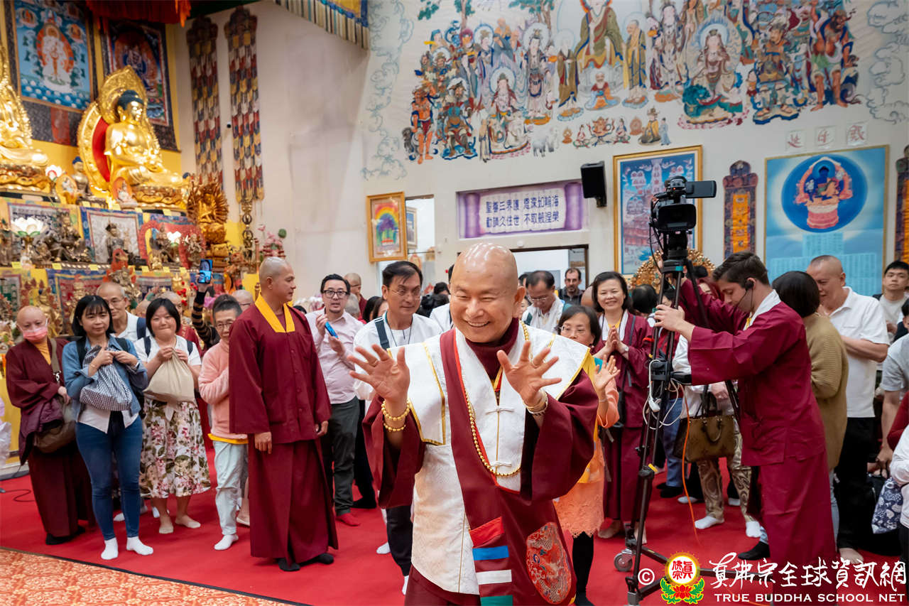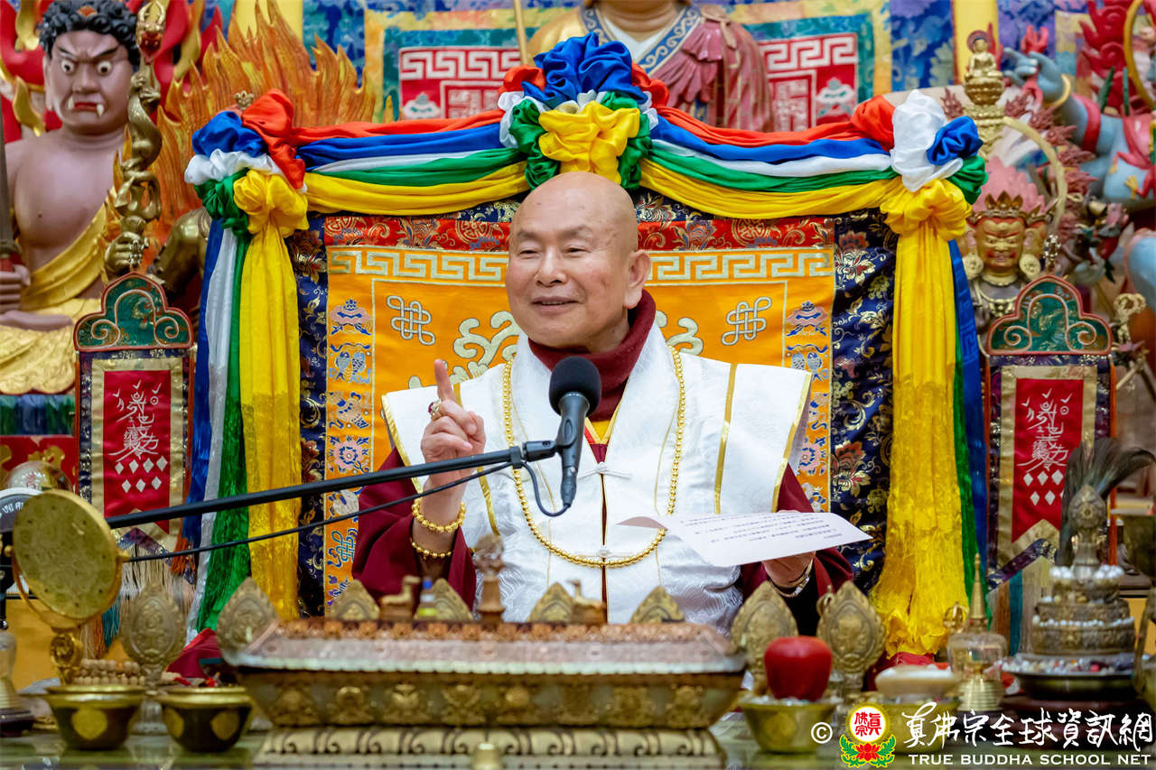 大家在莊嚴的蓮花童子心咒聲中,迎來了我們的根本傳承上師聖尊蓮生活佛盧勝彥。聖尊步履安詳,慈視大眾,進入壇場,昇於法座上,主持蓮花童子本尊法同修。