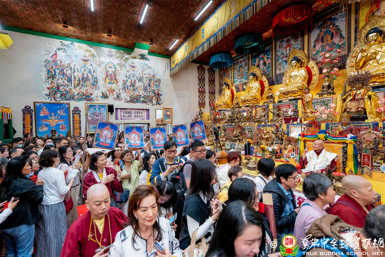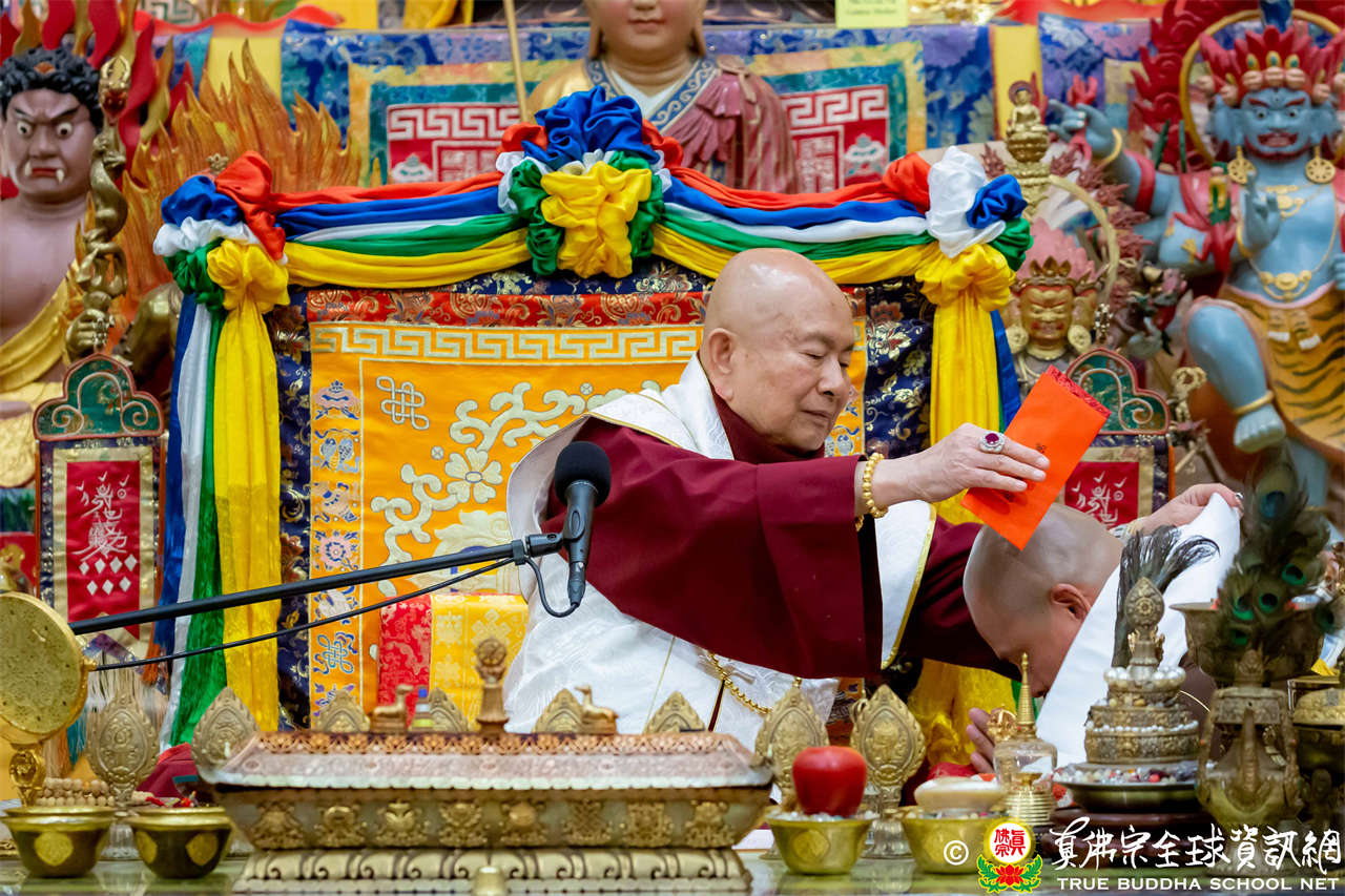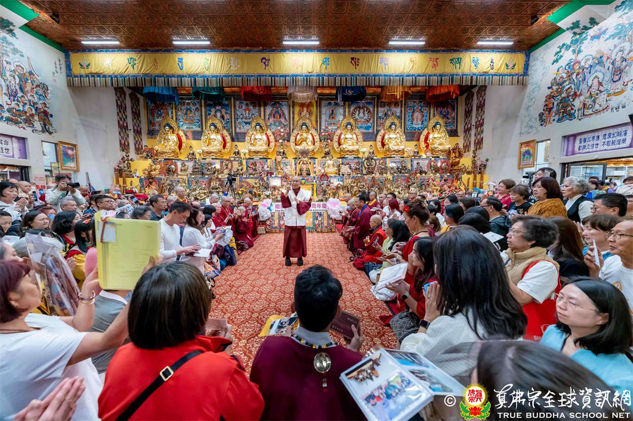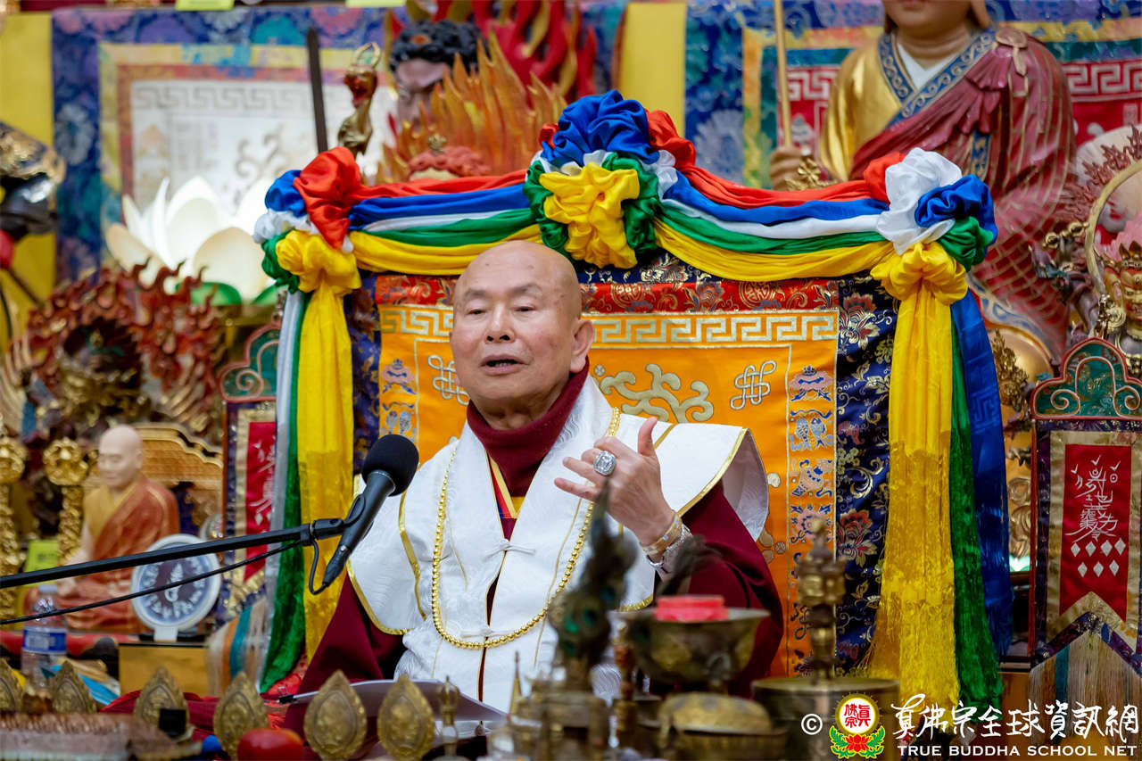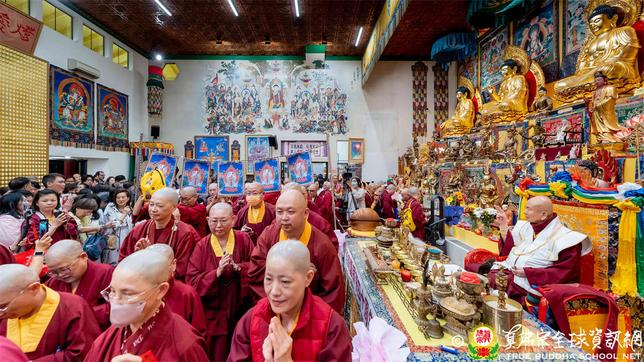 大家在莊嚴的蓮花童子心咒聲中,迎來了我們的根本傳承上師聖尊蓮生活佛盧勝彥。聖尊步履安詳,慈視大眾,進入壇場,昇於法座上,主持蓮花童子本尊法同修。