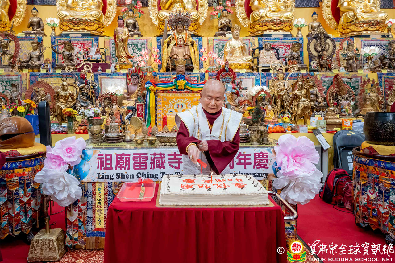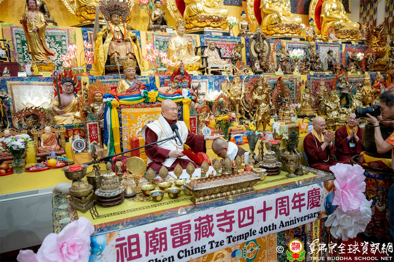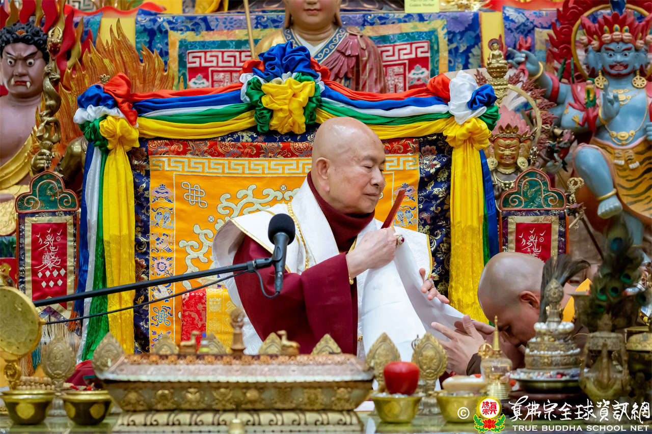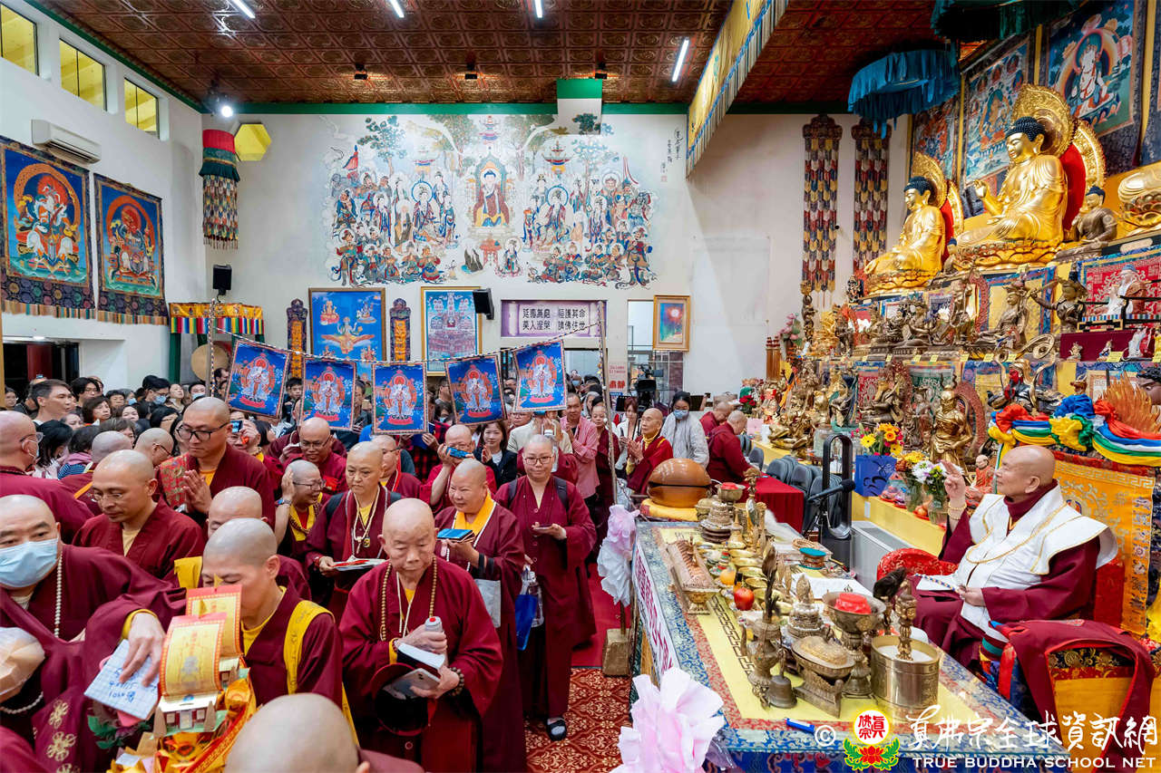 大家在莊嚴的蓮花童子心咒聲中,迎來了我們的根本傳承上師聖尊蓮生活佛盧勝彥。聖尊步履安詳,慈視大眾,進入壇場,昇於法座上,主持蓮花童子本尊法同修。