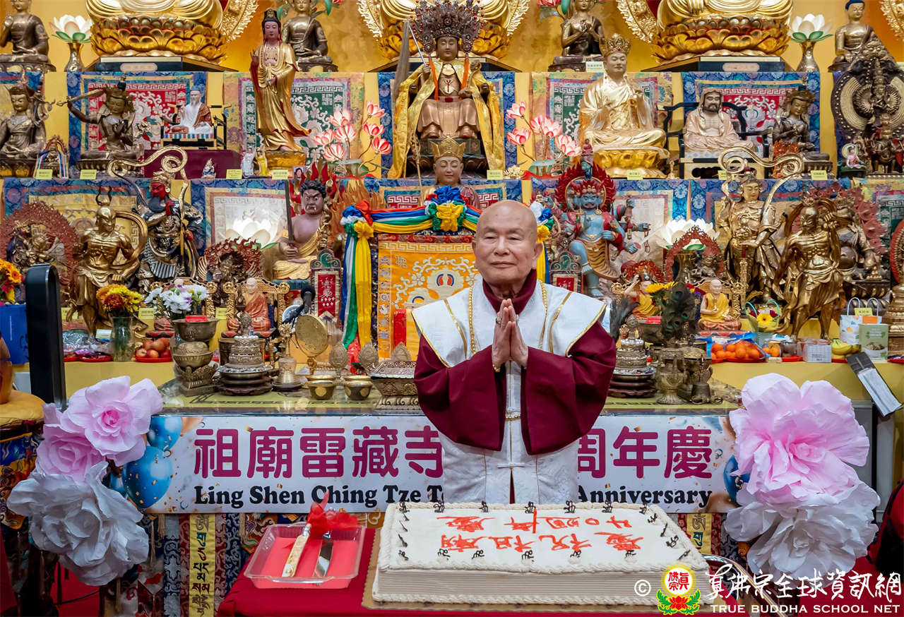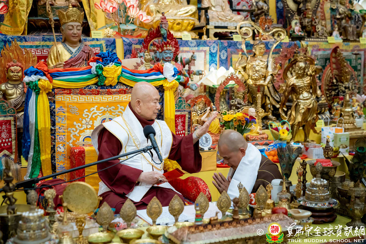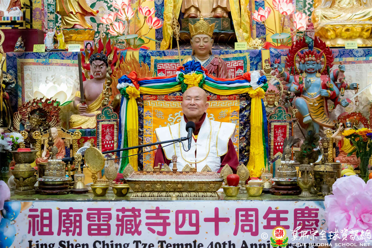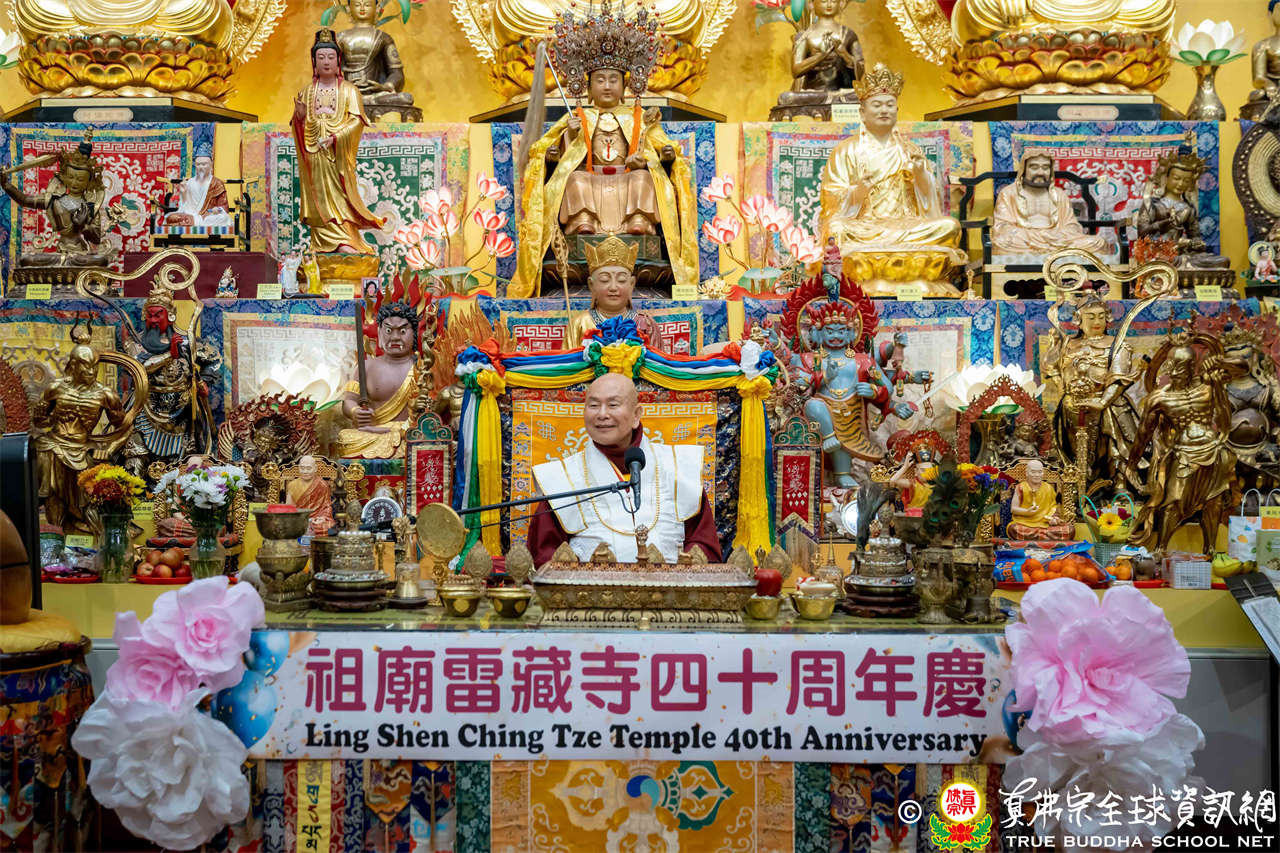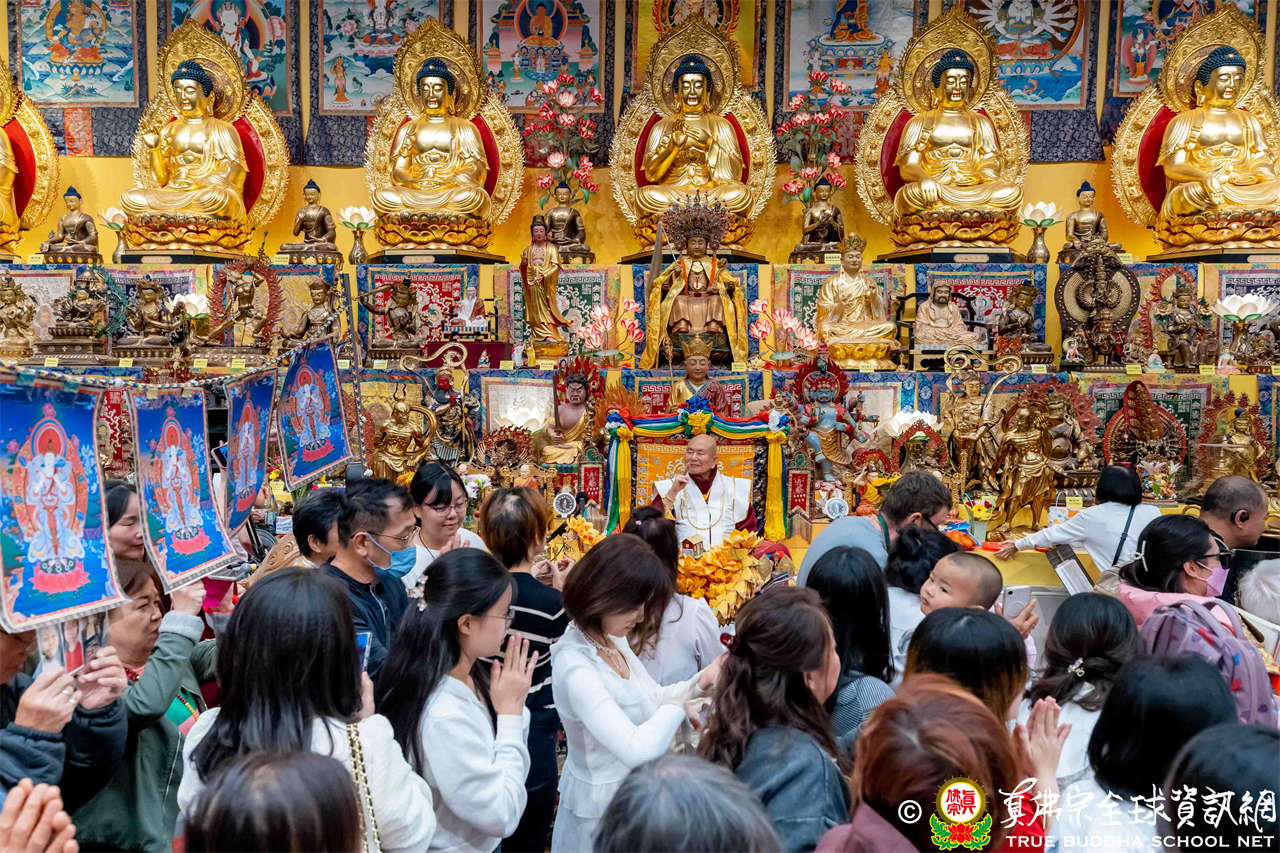大家在莊嚴的蓮花童子心咒聲中,迎來了我們的根本傳承上師聖尊蓮生活佛盧勝彥。聖尊步履安詳,慈視大眾,進入壇場,昇於法座上,主持蓮花童子本尊法同修。