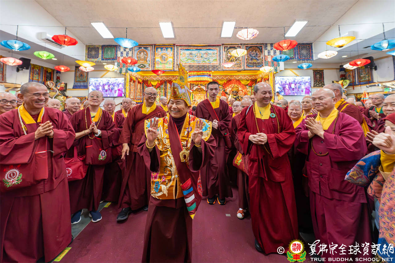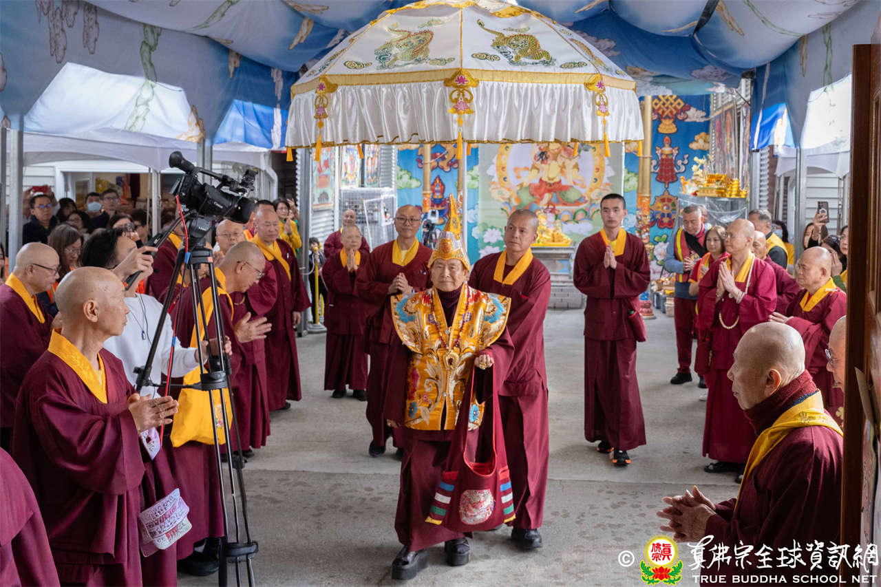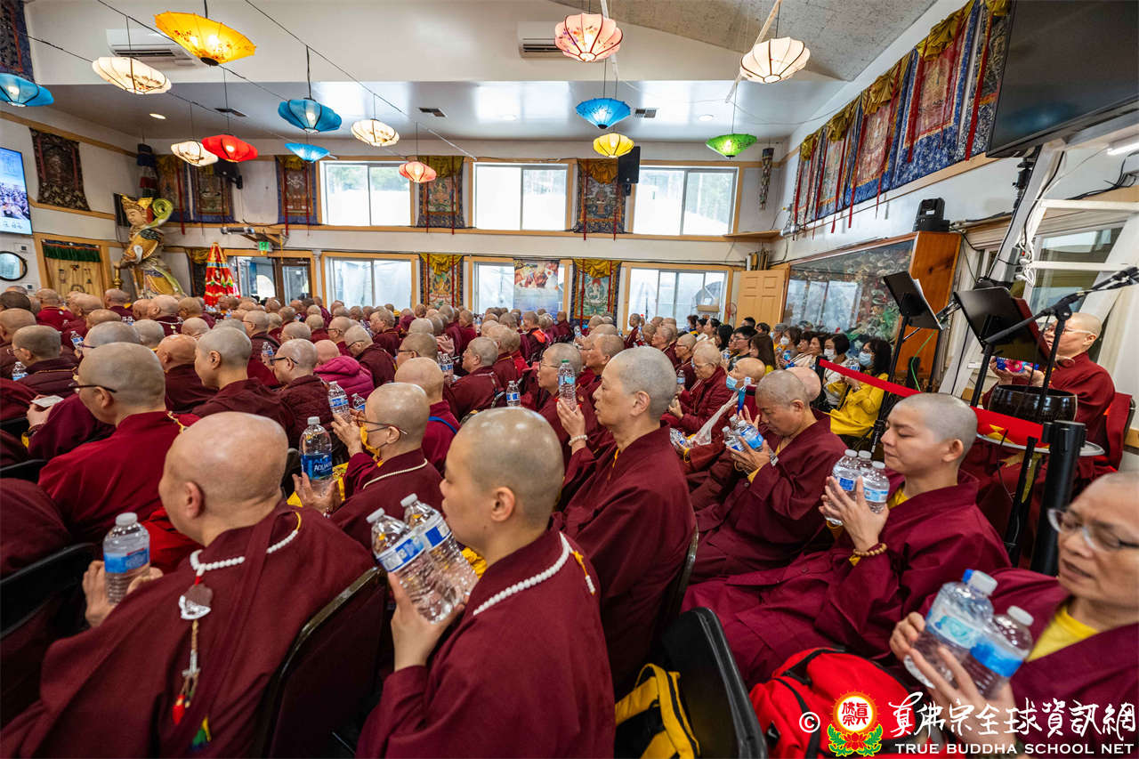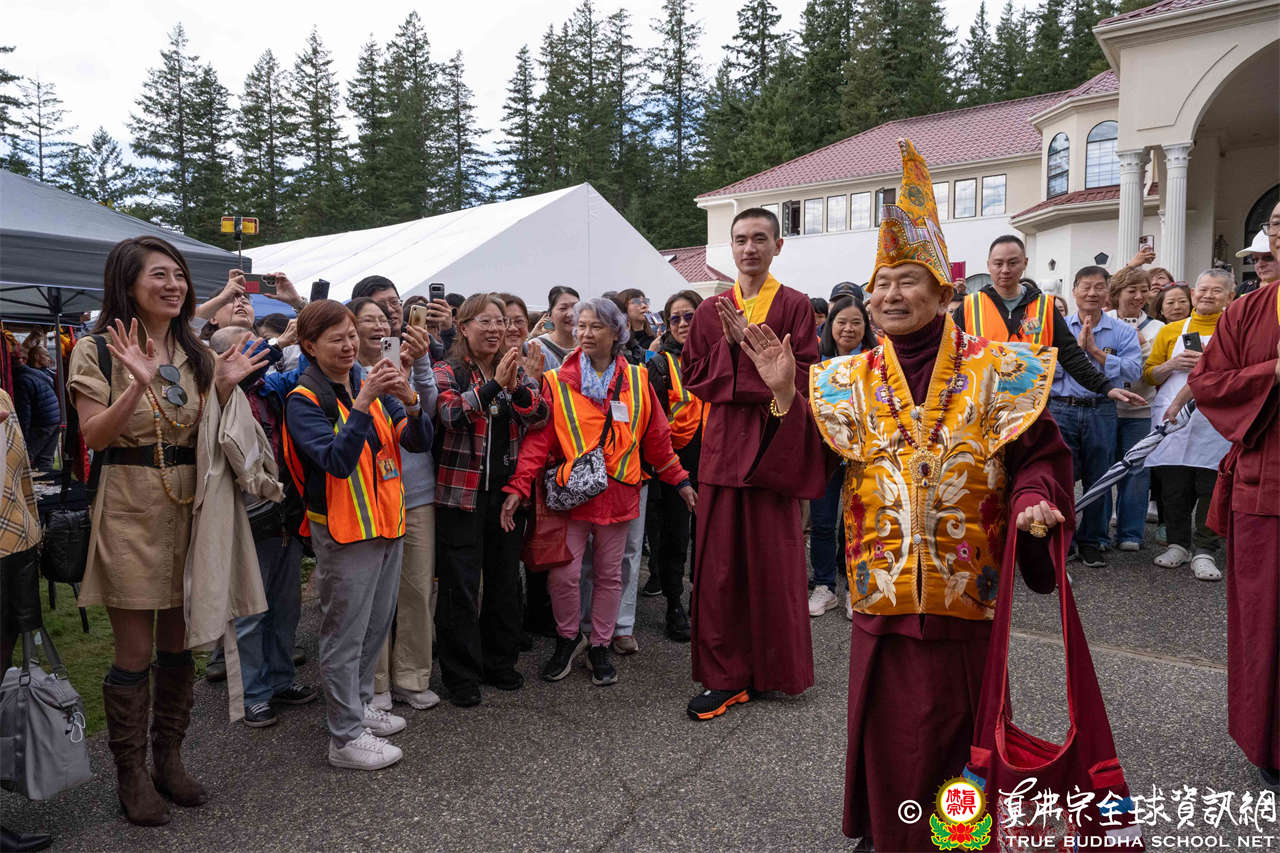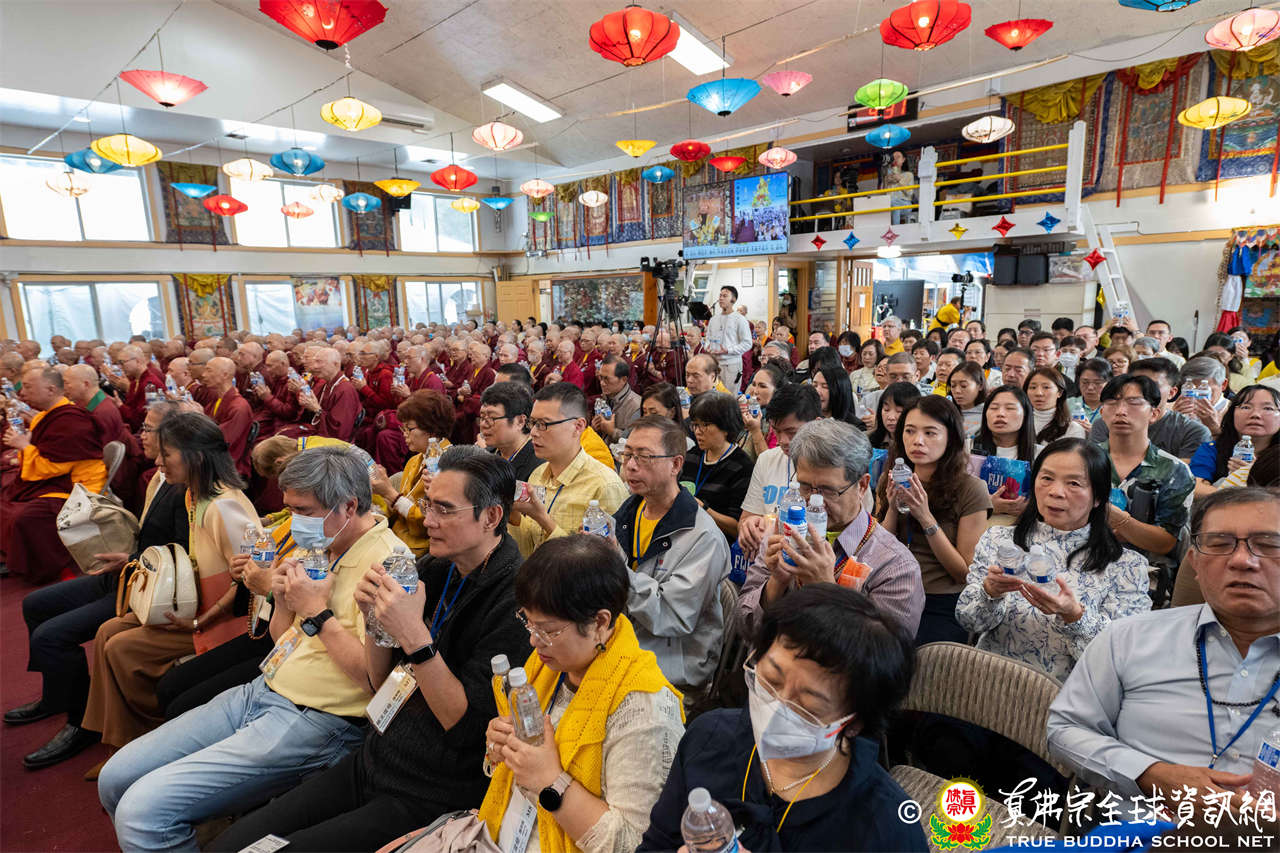 法王結束精彩開示後慈悲賜授現場與會大眾「藥王度母法」灌頂,法會在眾弟子恭敬祈禱與無量法喜中圓滿落幕。