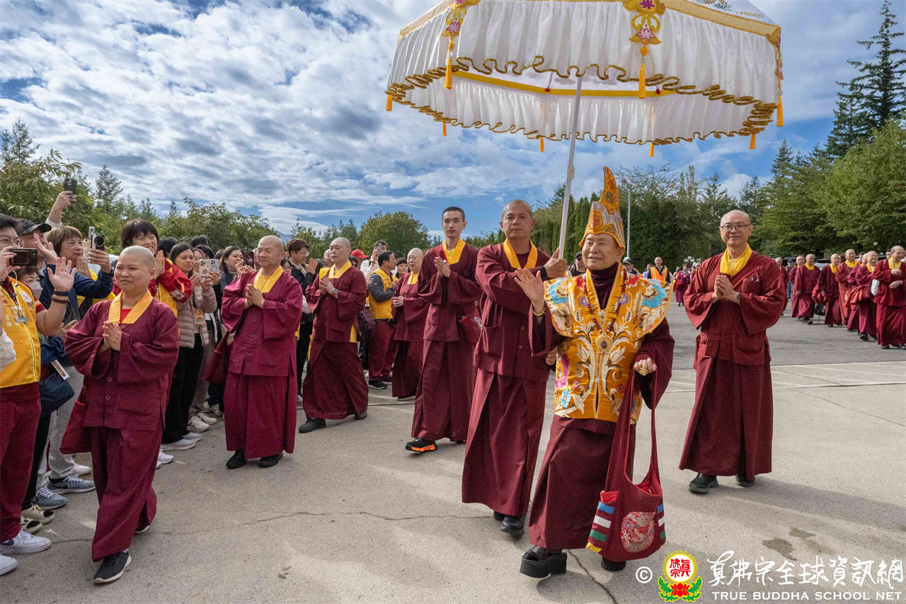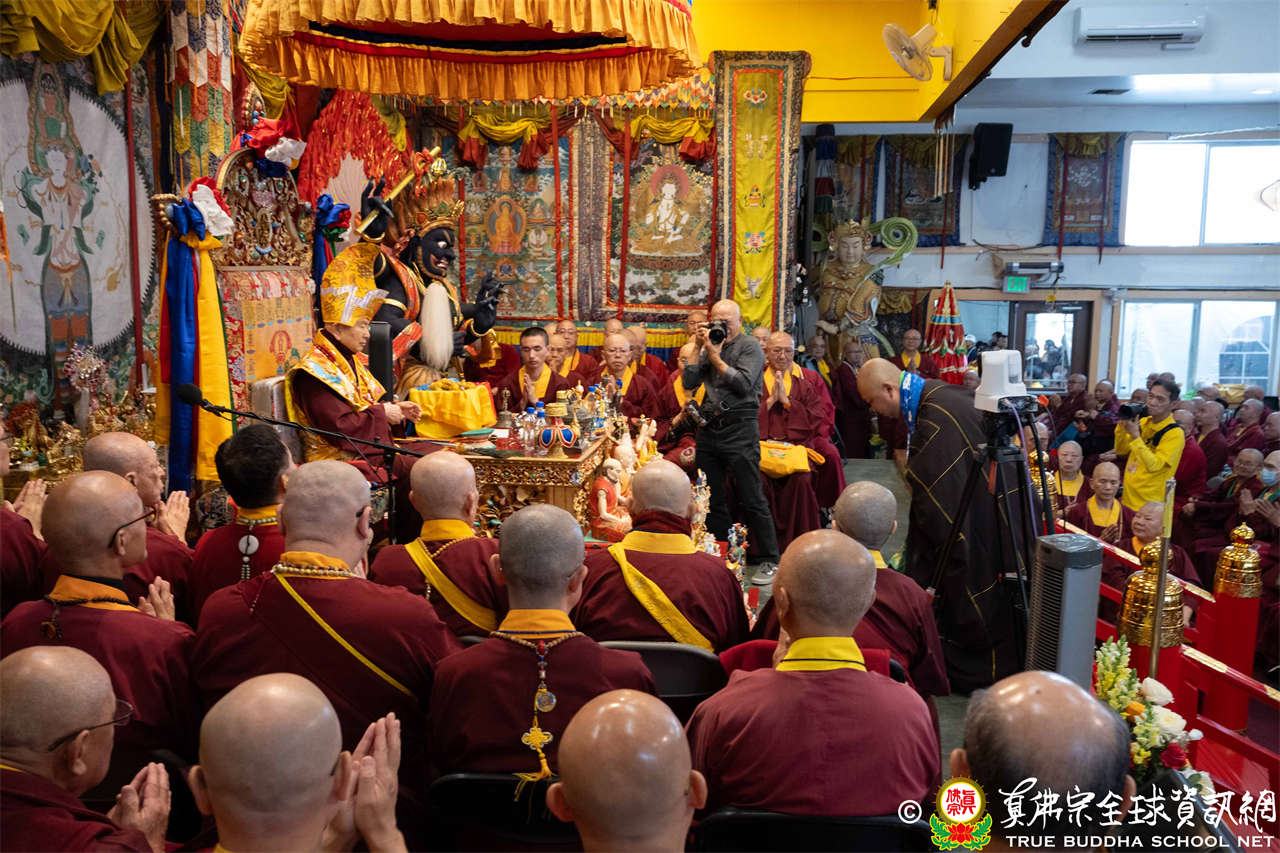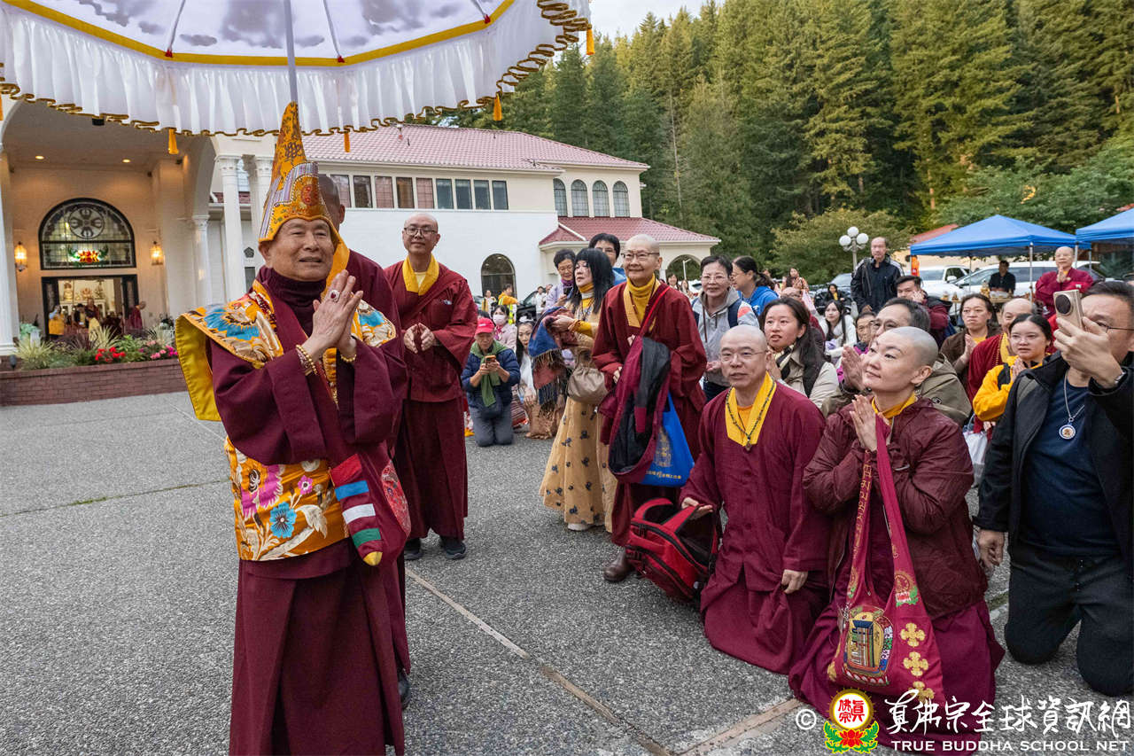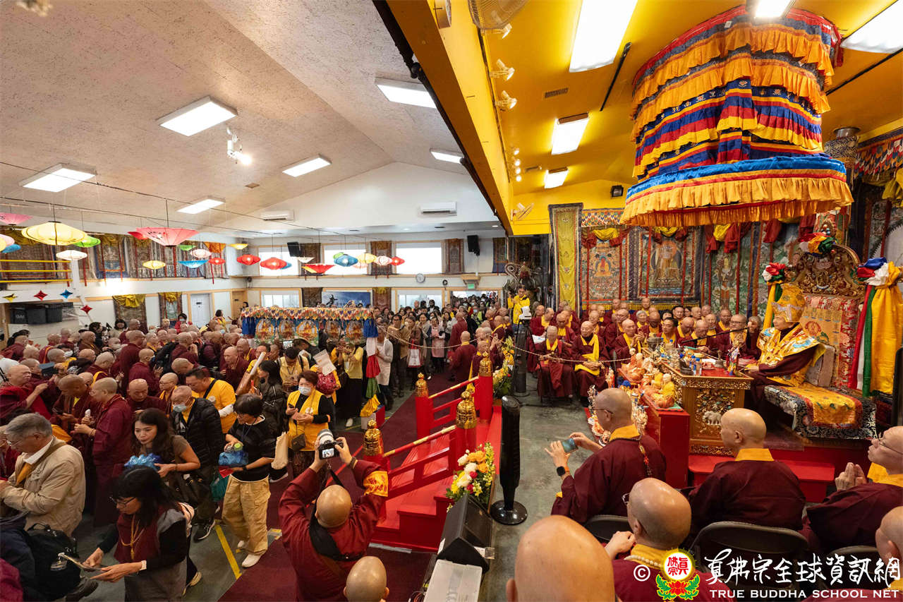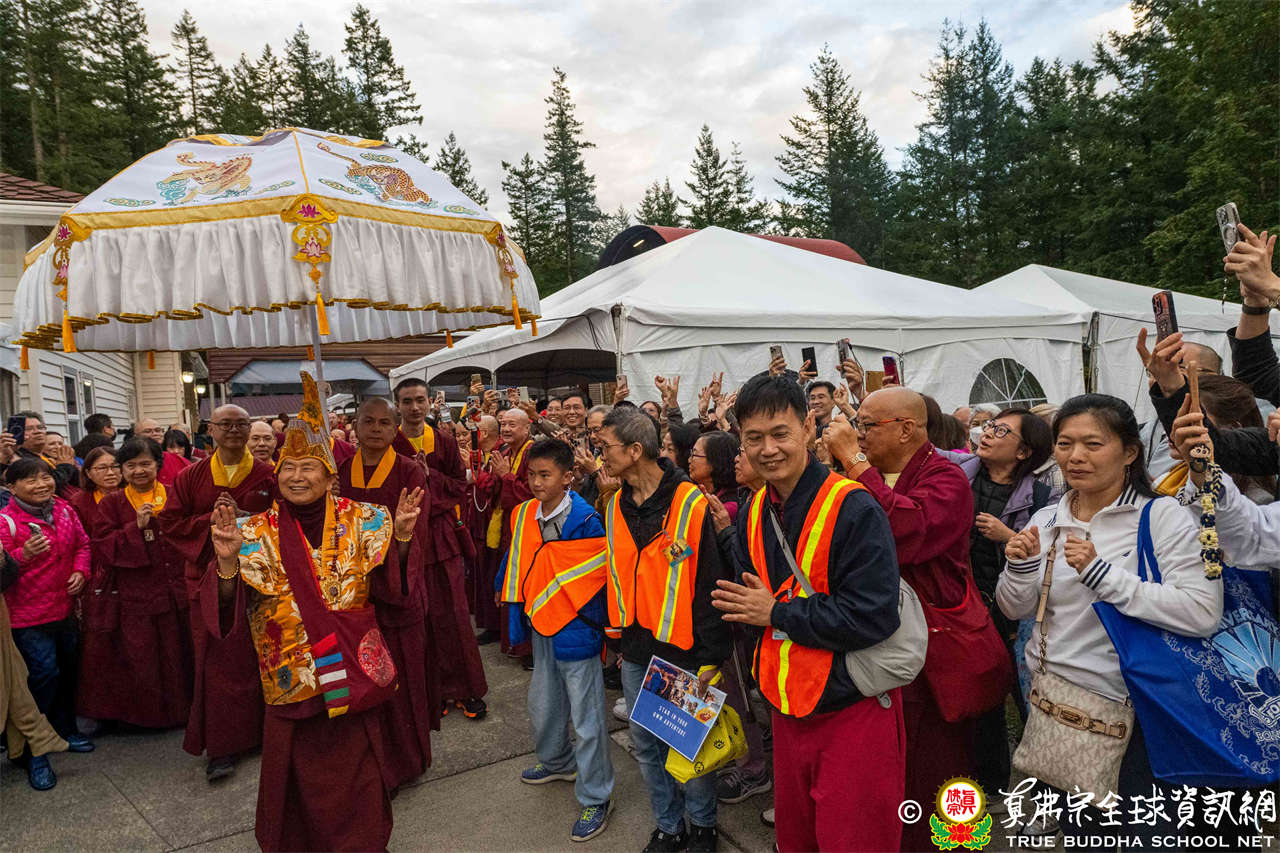 法王結束精彩開示後慈悲賜授現場與會大眾「藥王度母法」灌頂,法會在眾弟子恭敬祈禱與無量法喜中圓滿落幕。