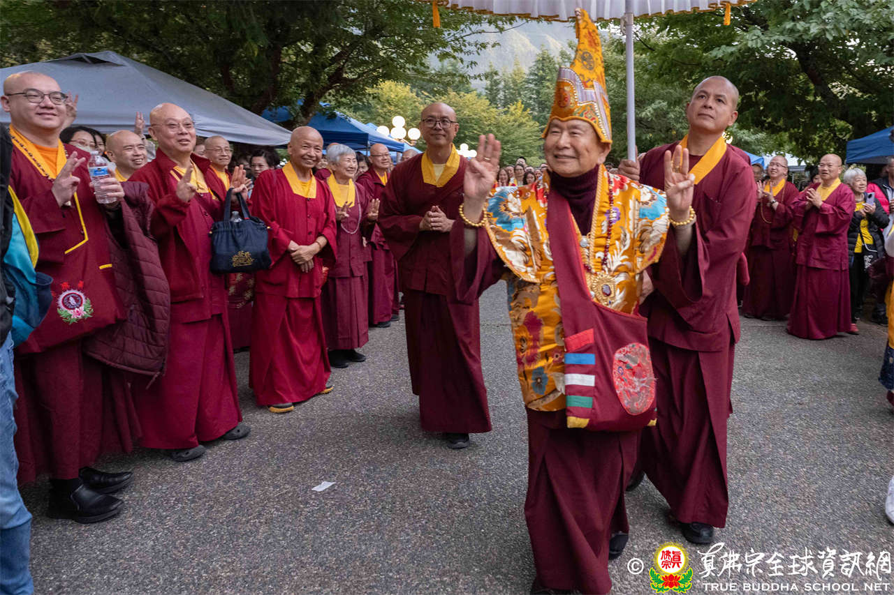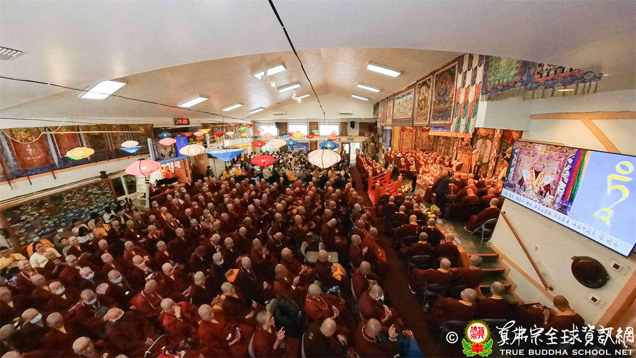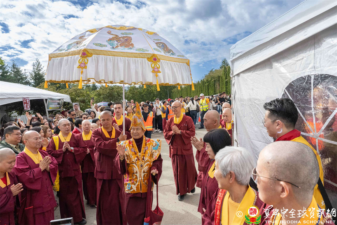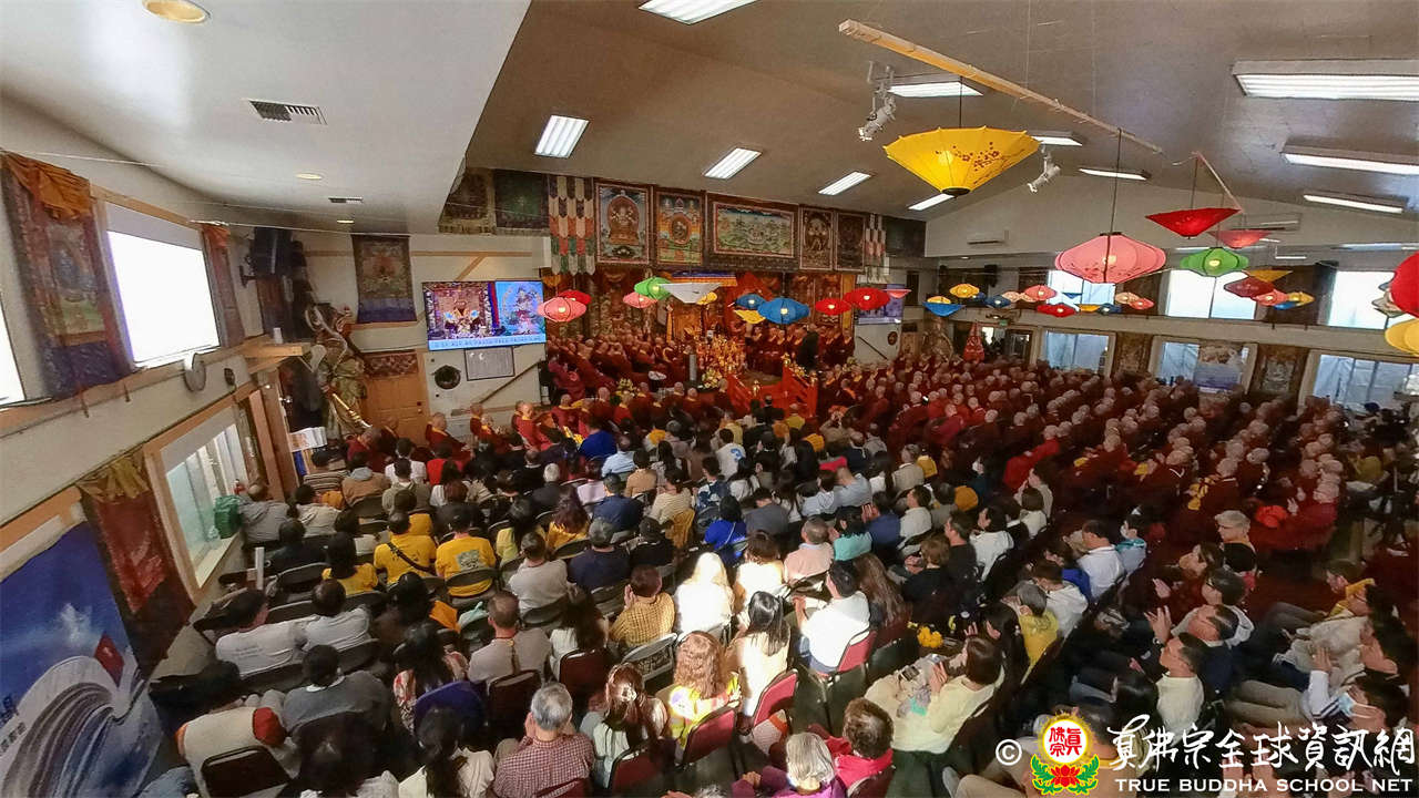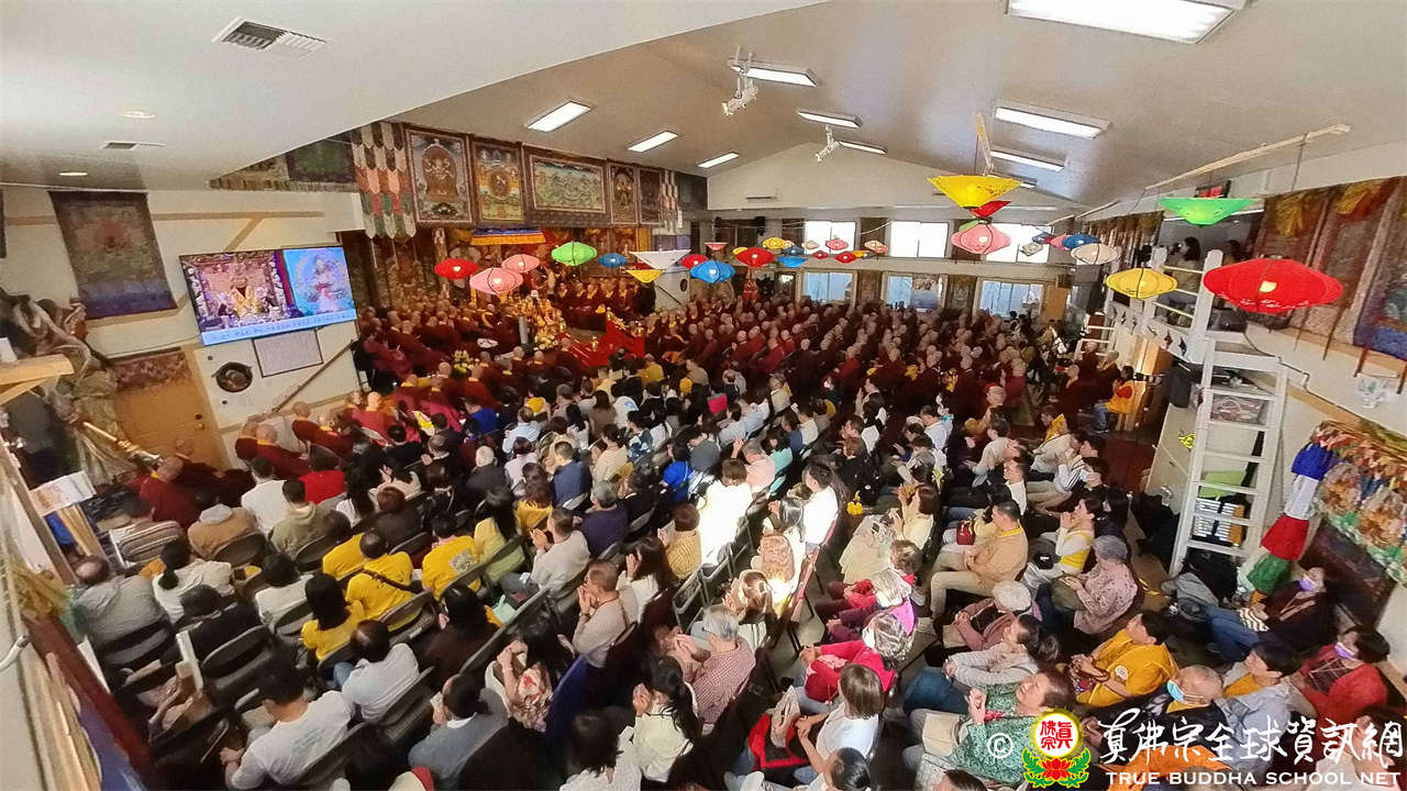法王結束精彩開示後慈悲賜授現場與會大眾「藥王度母法」灌頂,法會在眾弟子恭敬祈禱與無量法喜中圓滿落幕。