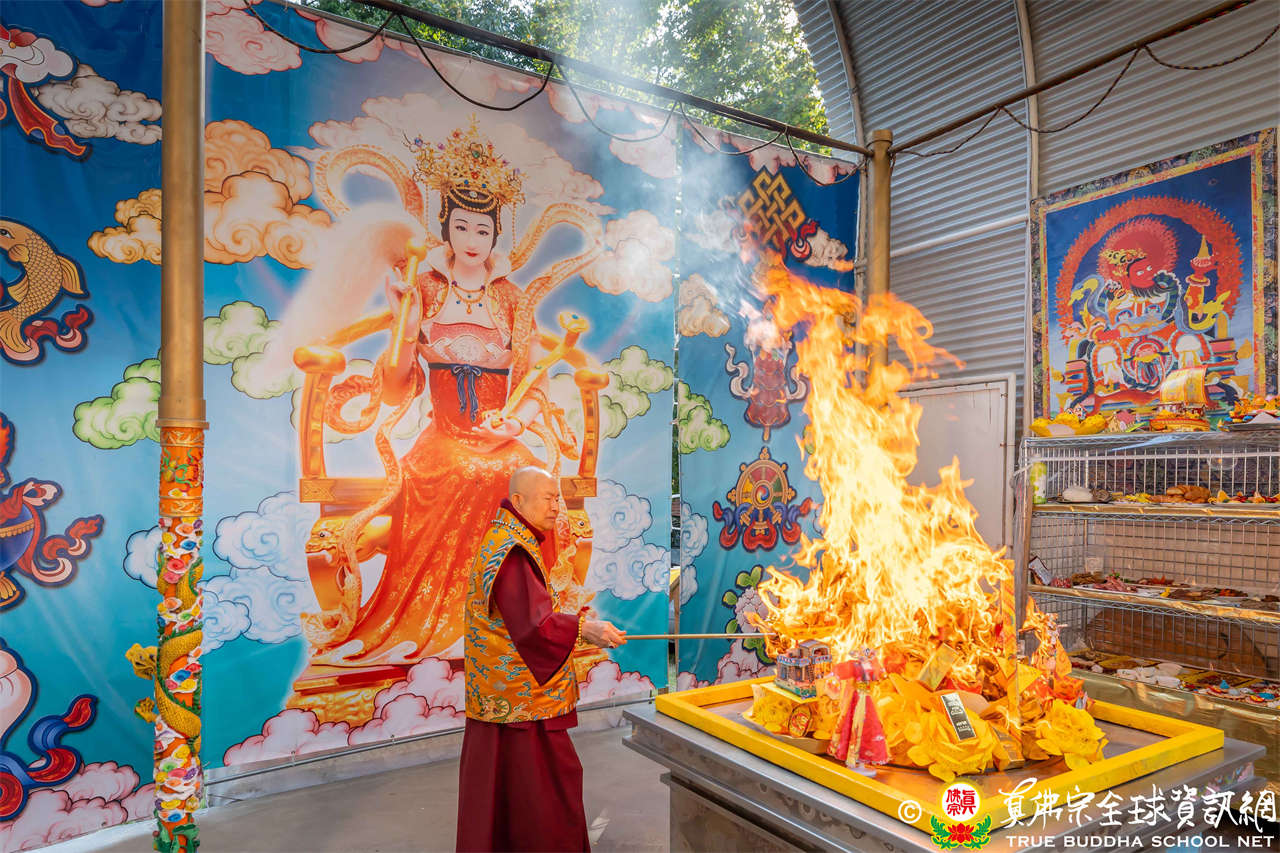 2025年9月28日,聖尊蓮生法王於彩虹雷藏寺主壇「瑤池金母」護摩法會。當日會場莊嚴殊勝,信眾齊聚,並有全球同門透過網路參與,共沐法喜。