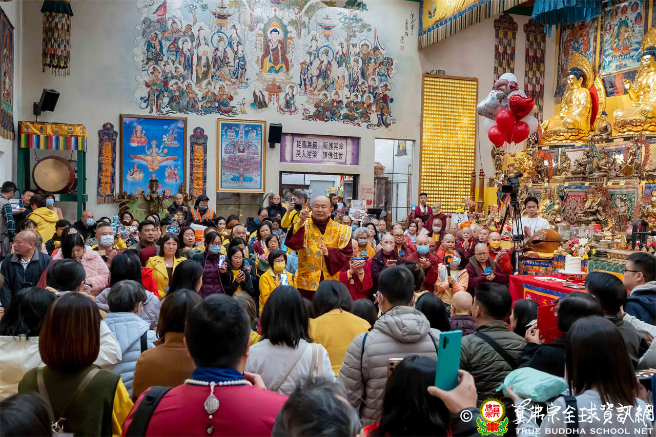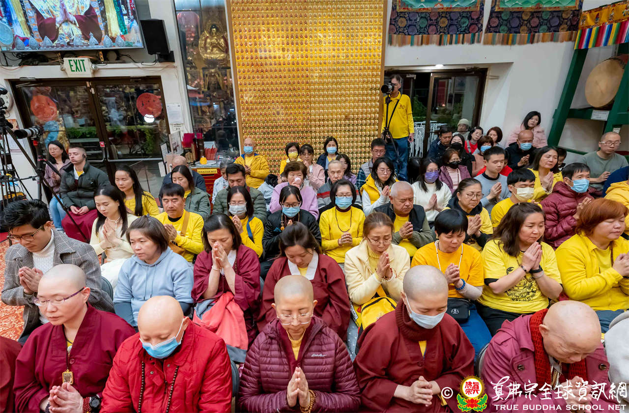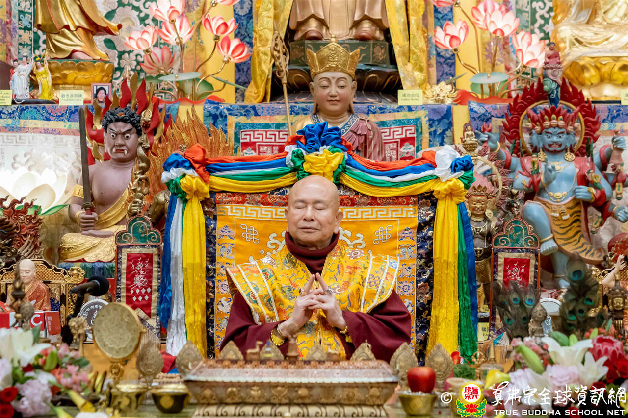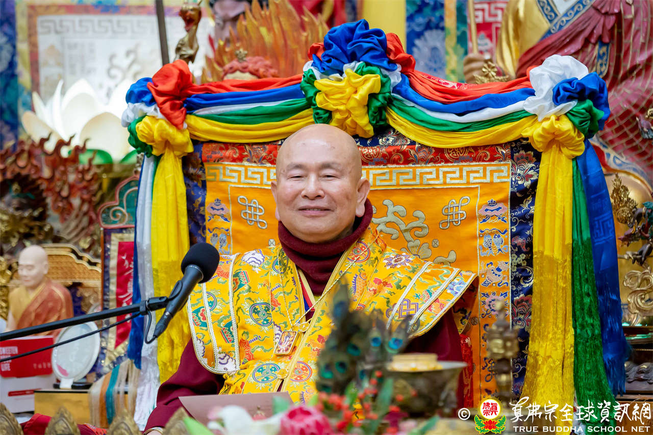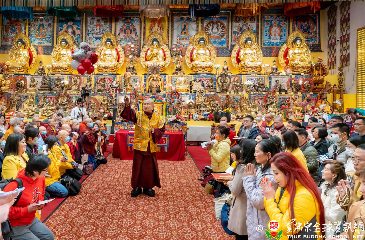 2025年10月18日聖尊蓮生活佛盧勝彥於西雅圖雷藏寺主持地藏王菩薩本尊法的同修,隨後為一對新人蓮花明亮與蓮花誼茵做福證,在與會大眾的見證與祝福之下,一切吉祥圓滿。