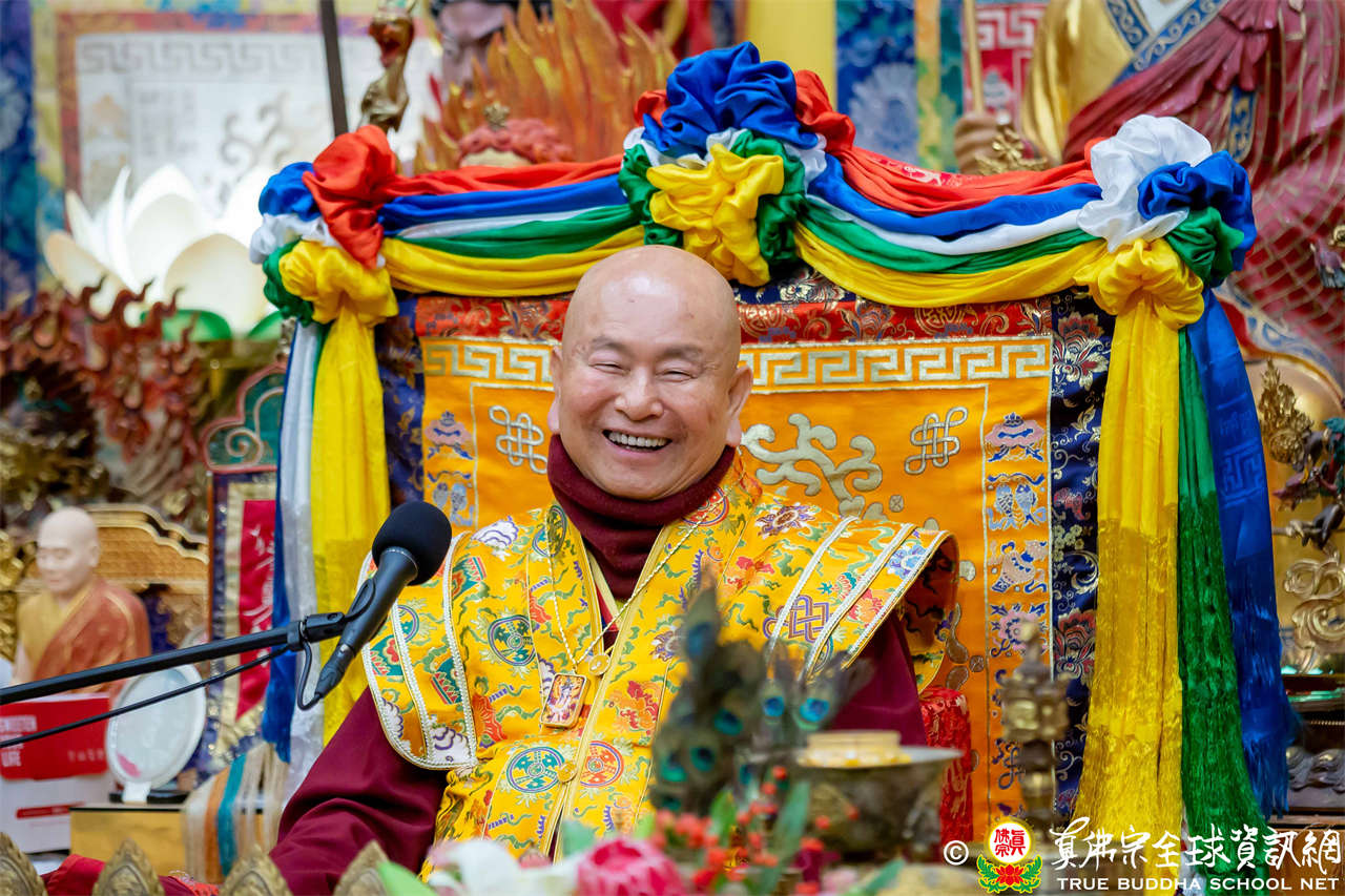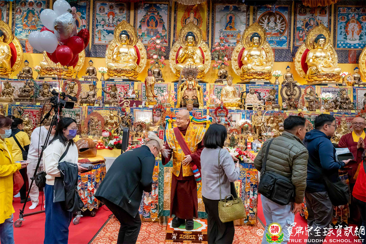 在殊勝珍貴的法語開示之後,聖尊為新皈依者進行皈依灌頂,並以拂塵加持與會大眾,法喜充滿。