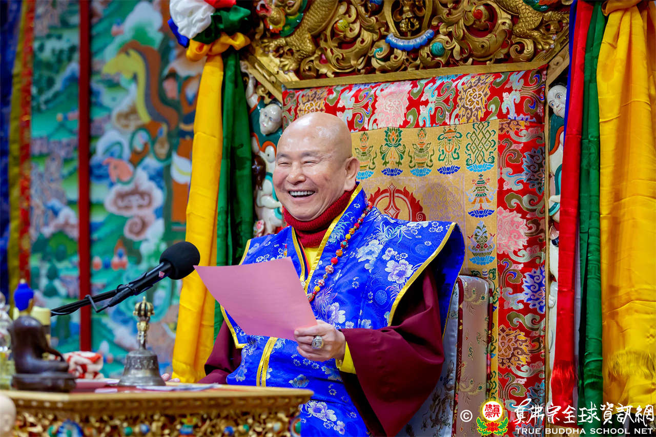 法王開示畢,衆人報以熱烈掌聲感謝法王。接著法王下座與線上弟子互相問候,並為與會大衆賜授藥師佛法灌頂。法會至此圓滿結束。