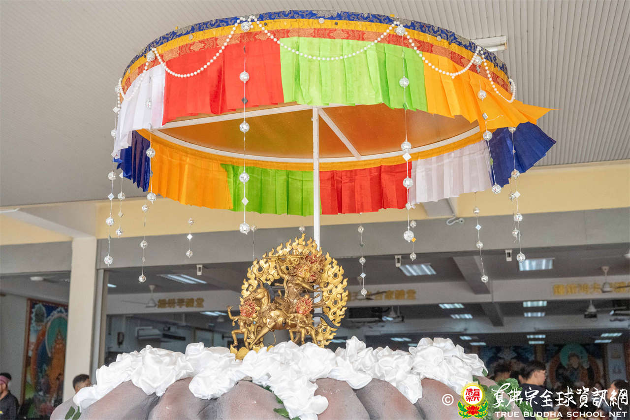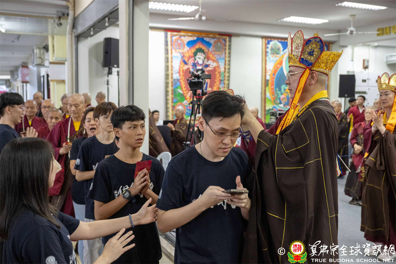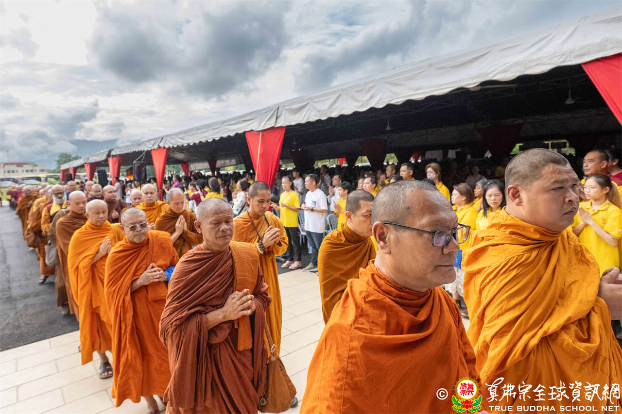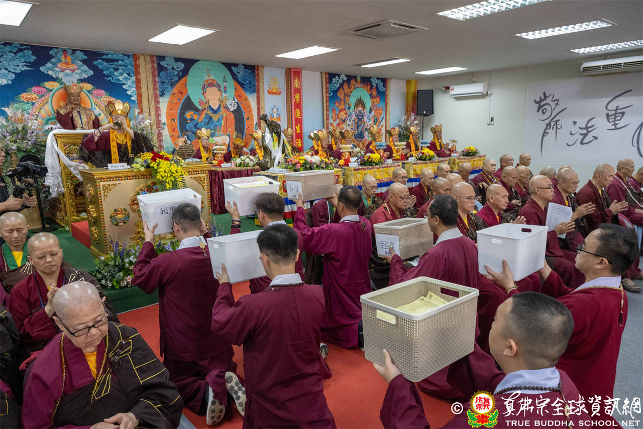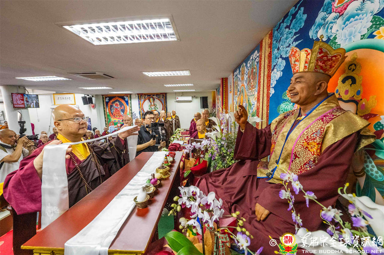供僧大會依循《真佛宗供僧儀軌》肅穆進行,由長老釋蓮栽上師代表根本上師聖尊蓮生活佛盧勝彥納受信眾供養,並代表供養住世羅漢賓頭盧尊者。全體真佛弟子齊聲念誦《請佛住世祈願文》,祈請根本上師常住世間、永轉法輪;現場亦有南傳僧人持誦巴利文《祈禱文》,北傳僧人念誦《大悲咒》及《心經》。隨後,眾同門善信向僧眾敬獻哈達與供養,並由釋蓮栽長老開示佛法,供僧大會圓滿。