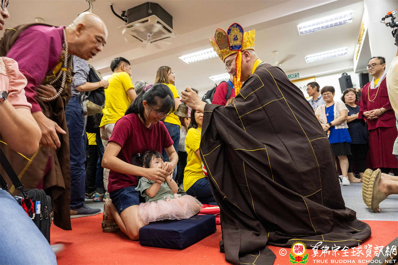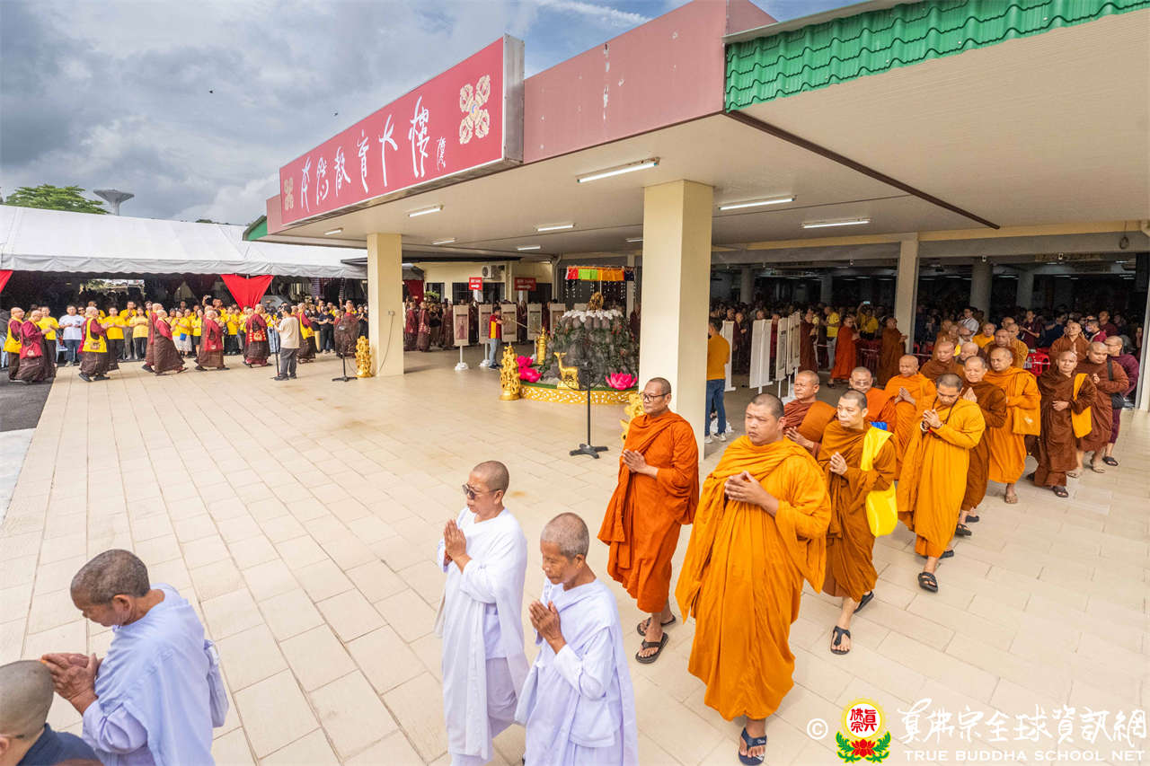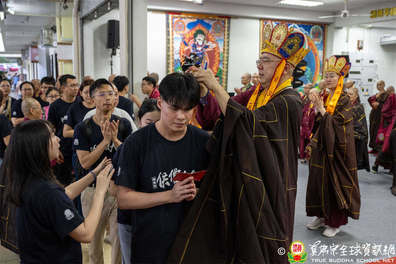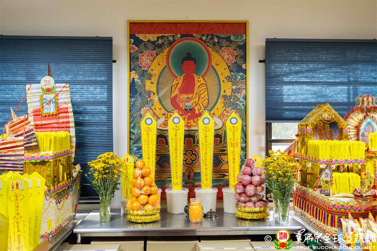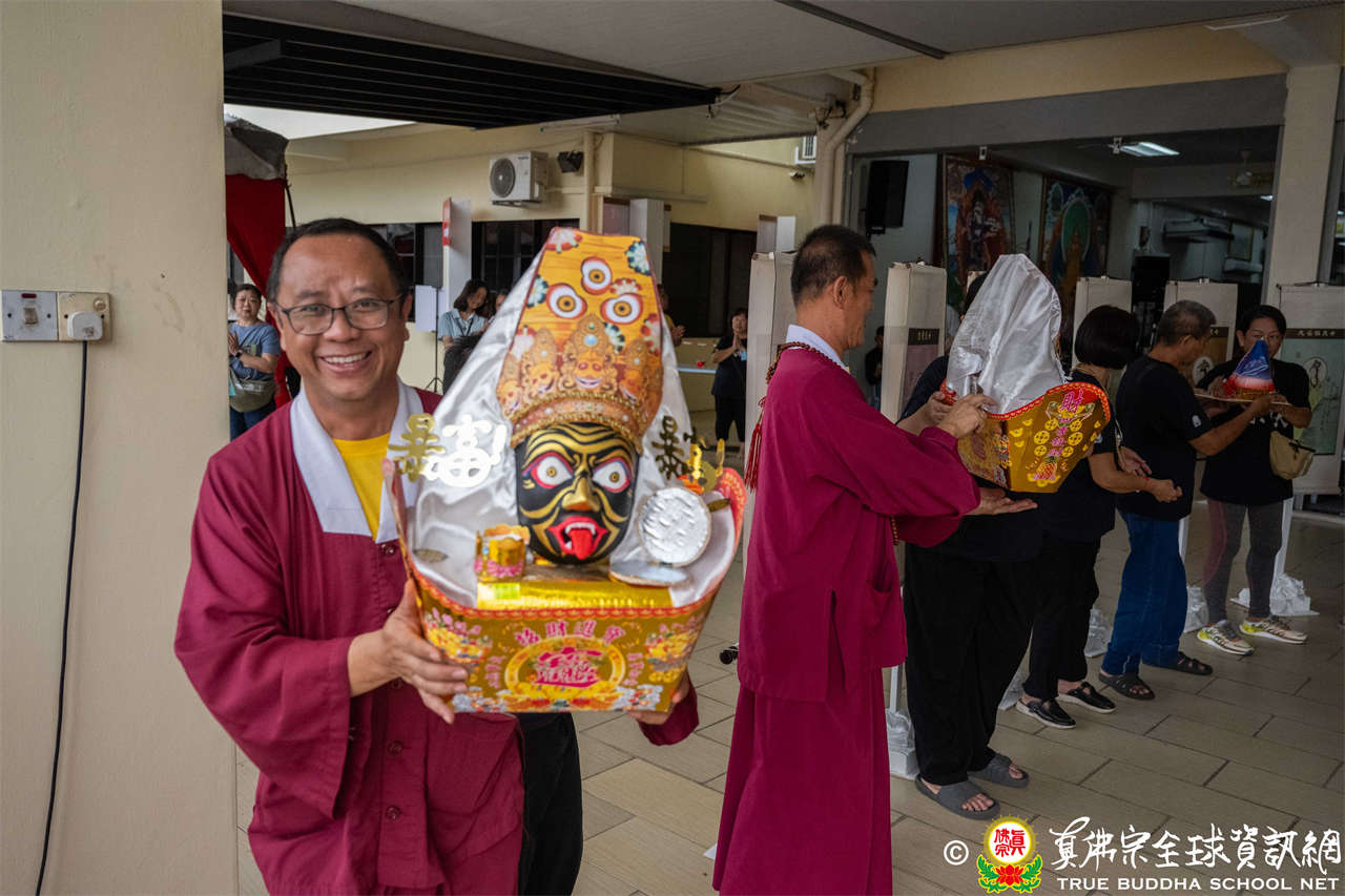 供僧大會依循《真佛宗供僧儀軌》肅穆進行,由長老釋蓮栽上師代表根本上師聖尊蓮生活佛盧勝彥納受信眾供養,並代表供養住世羅漢賓頭盧尊者。全體真佛弟子齊聲念誦《請佛住世祈願文》,祈請根本上師常住世間、永轉法輪;現場亦有南傳僧人持誦巴利文《祈禱文》,北傳僧人念誦《大悲咒》及《心經》。隨後,眾同門善信向僧眾敬獻哈達與供養,並由釋蓮栽長老開示佛法,供僧大會圓滿。