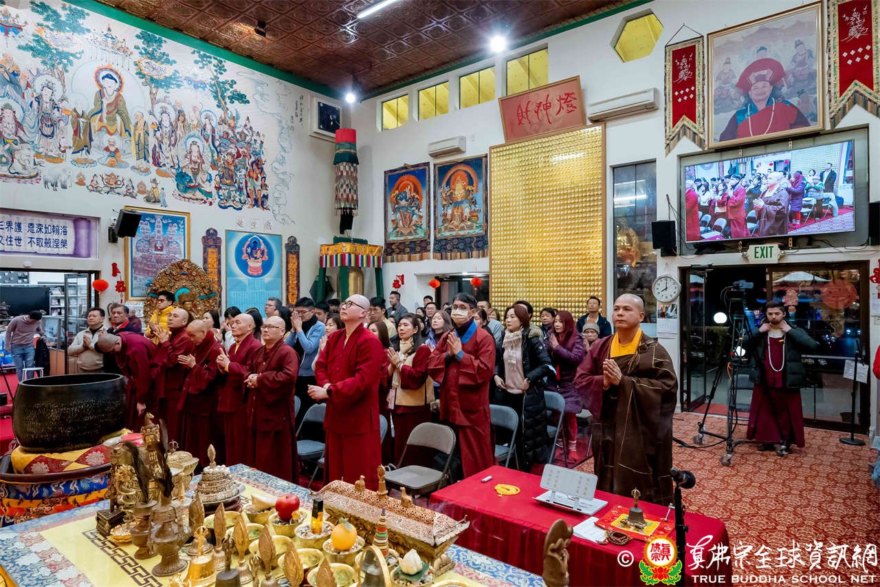 雖然天寒地凍,大眾仍虔敬的熱忱參與,跟隨著蓮吟上師做禮拜、獻供、誦經、持咒、入定、回向,人人全神貫注的修法,祈求瑤池金母大天尊、阿彌陀佛、諸佛菩薩護法金剛佛光注照,聖尊與師母都健健康康的早日和弟子們團聚在西雅圖雷藏寺。