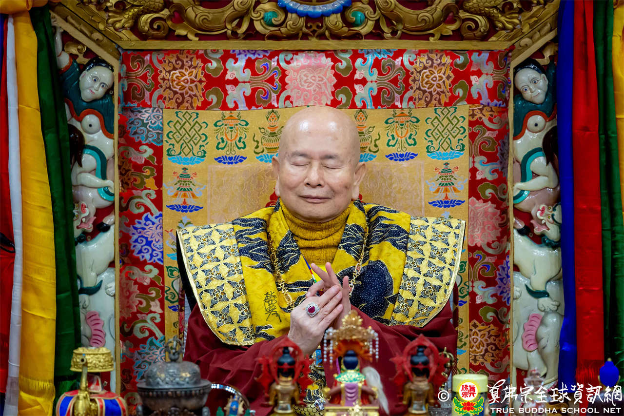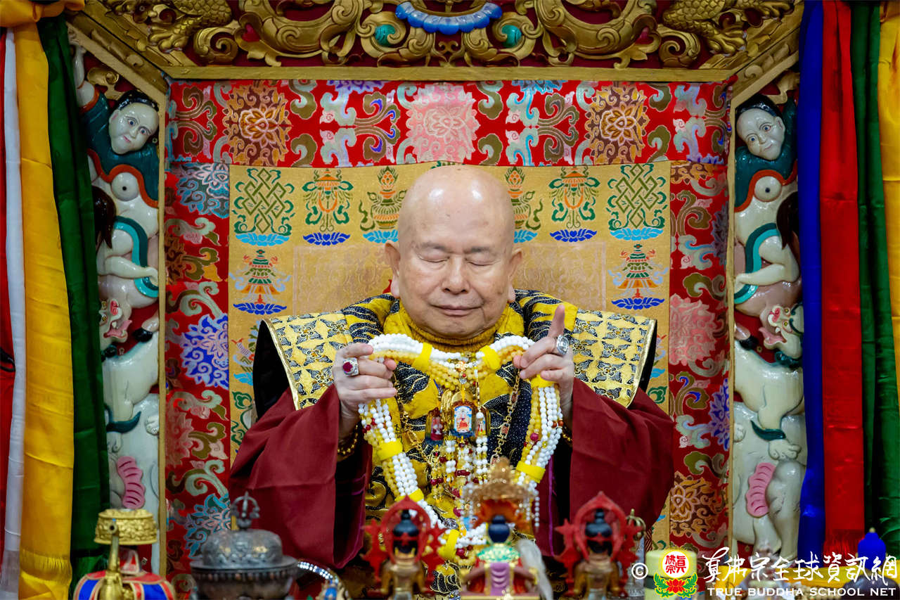 接著,法王繼續講解《大佛頂首楞嚴經》〈卷第四〉:「無上大悲清淨寶王,善開我心。能以如是種種因緣,方便提獎,引諸沈冥出於苦海。世尊。我今雖承如是法音,知如來藏妙覺明心遍十方界,含育如來十方國土,清淨寶嚴妙覺王剎。如來復責多聞無功,不逮修習。我今猶如旅泊之人,忽蒙天王賜與華屋,雖獲大宅,要因門入。惟願如來不捨大悲,示我在會諸蒙暗者,捐捨小乘,畢獲如來無餘涅槃本發心路。令有學者,從何攝伏疇昔攀緣,得陀羅尼,入佛知見。作是語已,五體投地。在會一心,佇佛慈旨。」