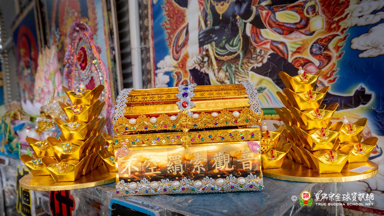 談及今日主尊不空羂索觀音,法王開示,「不空」代表所求不落空;「羂索」象徵以慈悲法索綁住一切不好之事,令災厄煩惱遠離,同時將吉祥福分牽引而來,賜予眾生。因此,不空羂索觀音具足息災、降伏、敬愛、超度等大威神力,能滿眾生所願,也因此報名人數眾多。