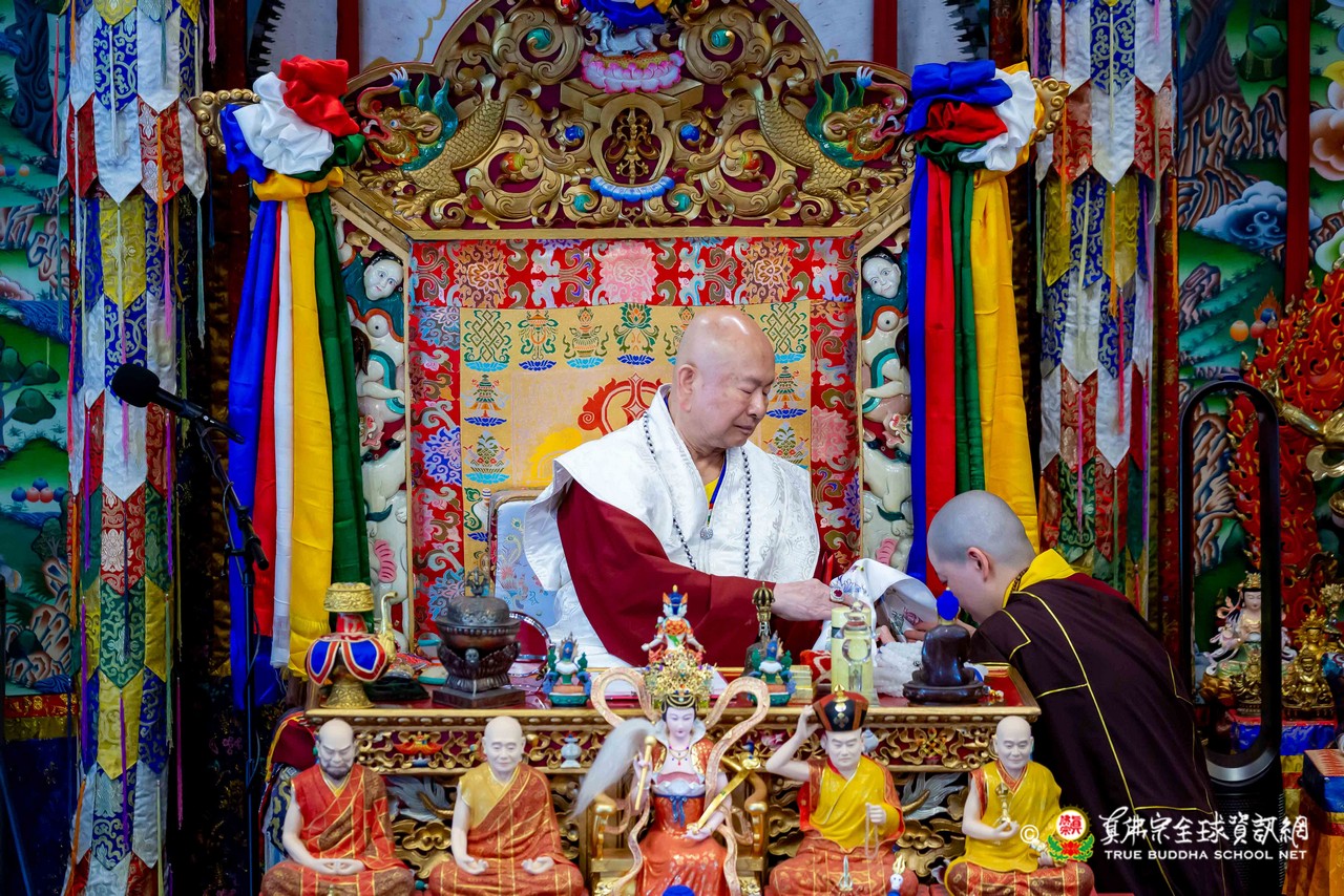 隨後,法王談及與瑤池金母深厚殊勝的因緣。法王開示,瑤池金母是自己第一位本尊,追隨至今已五十餘年。金母最是慈悲,同時也是最嚴厲的本尊,慈悲中具威德,嚴厲中含教化,時時引導弟子走向正道。