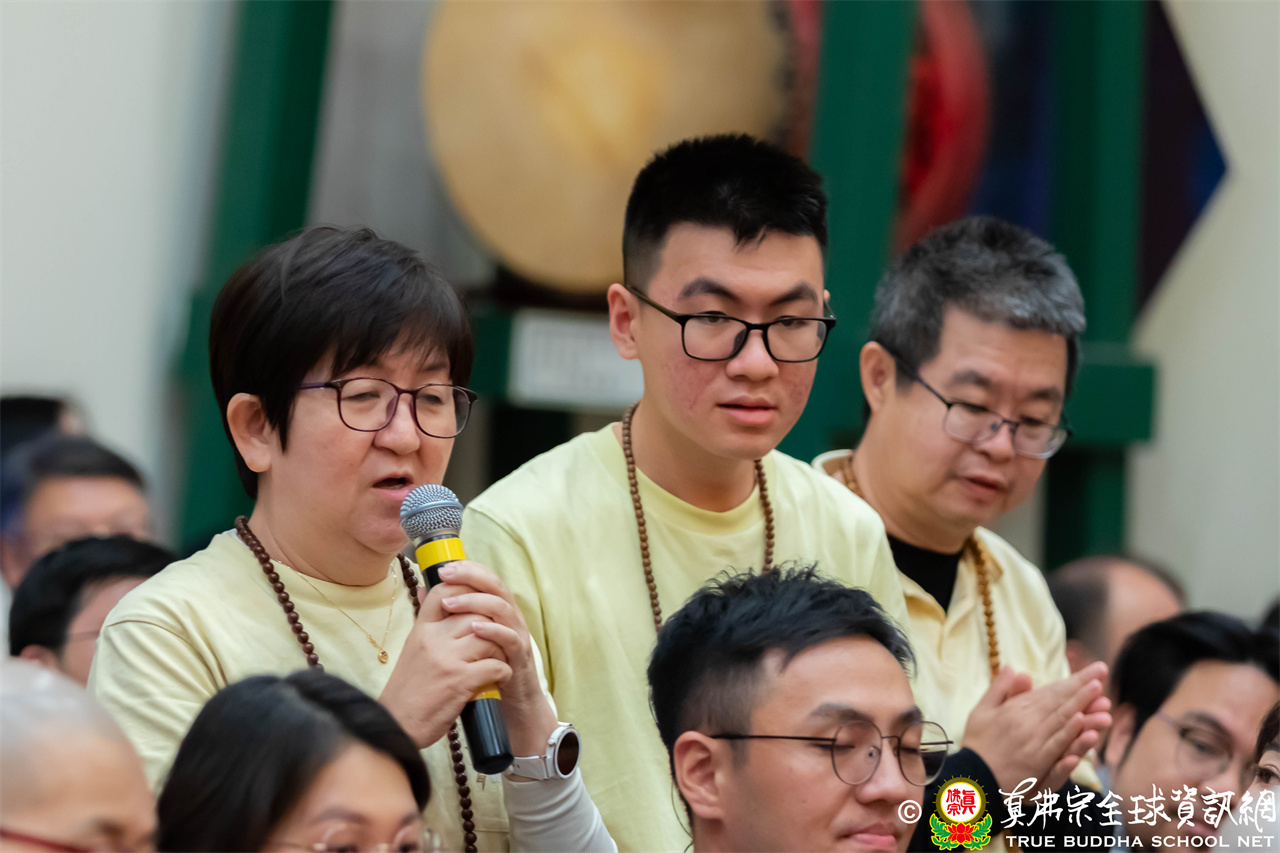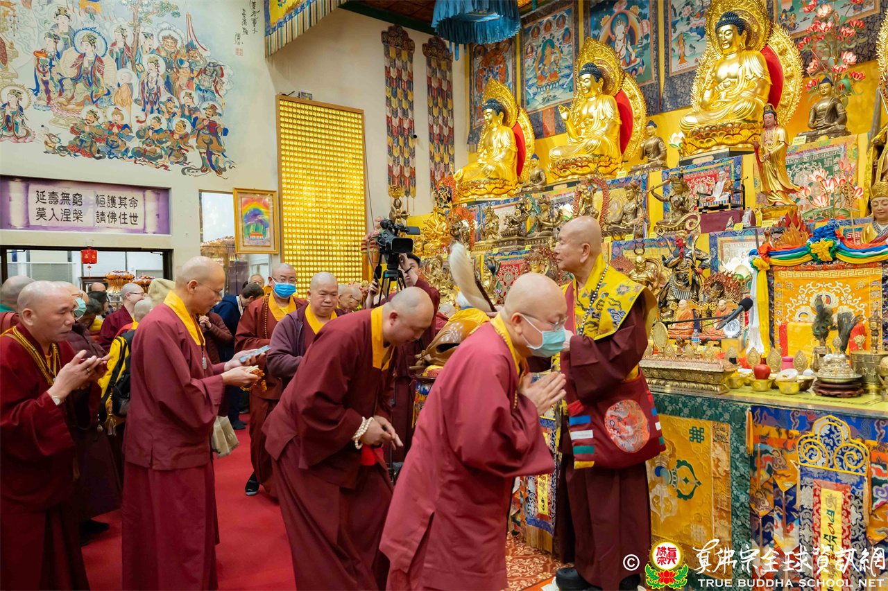 聖尊精闢寶貴的法語開示後,加持大悲咒水、開光佛像,最後持拂塵一一加持與會大眾。