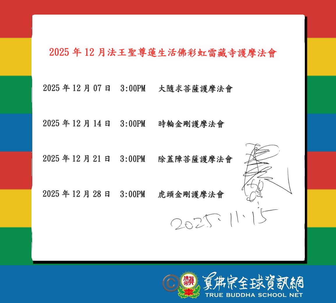 2025年12月法王聖尊蓮生活佛彩虹雷藏寺護摩法會........
