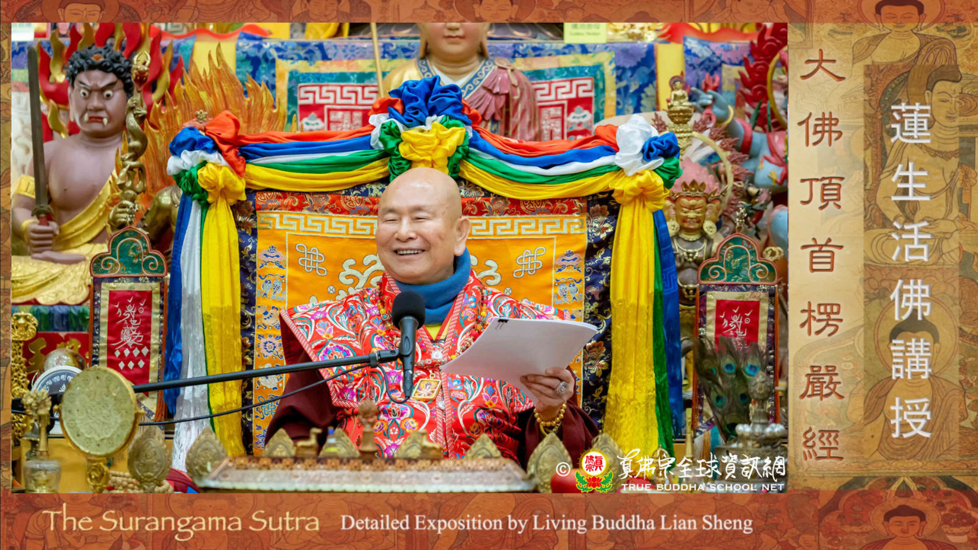 「爾時世尊。開示阿難。及諸大眾:欲令心入無生法忍。於師子座,摩阿難頂,而告之言:如來常說諸法所生,唯心所現。一切因果,世界微塵,因心成體。阿難,若諸世界,一切所有,其中乃至草葉縷結,詰其根元,咸有體性。縱令虛空,亦有名貌。何況清淨妙淨明心,性一切心,而自無體。若汝執吝,分別覺觀,所了知性,必為心者。此心即應離諸一切色香味觸諸塵事業,別有全性。如汝今者承聽我法,此則因聲而有分別。縱滅一切見聞覺知,內守幽閑,猶為法塵分別影事。我非敕汝,執為非心。但汝於心,微細揣摩。若離前塵有分別性,即真汝心。若分別性,離塵無體,斯則前塵分別影事。塵非常住,若變滅時,此心則同龜毛兔角,則汝法身同於斷滅,其誰修證,無生法忍。