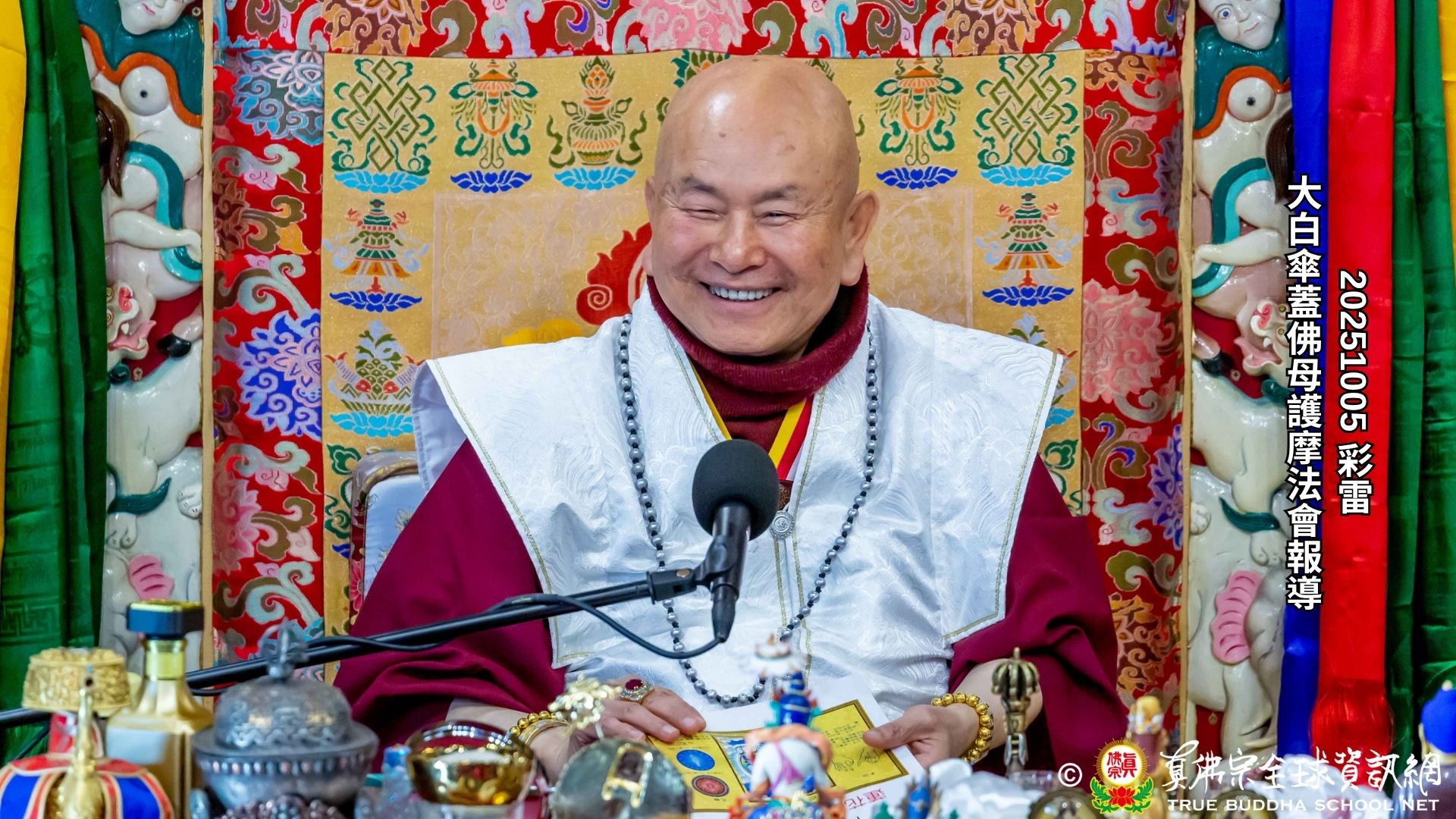 2025年10月5日,彩虹雷藏寺恭請法王聖尊蓮生法王,主持南摩大白傘蓋佛母護摩法會。法會後,法王預告,下週法會主尊為蓮花童子。