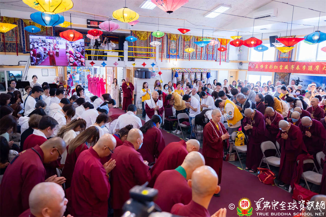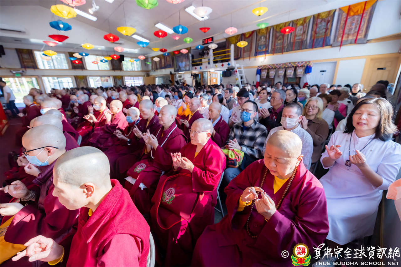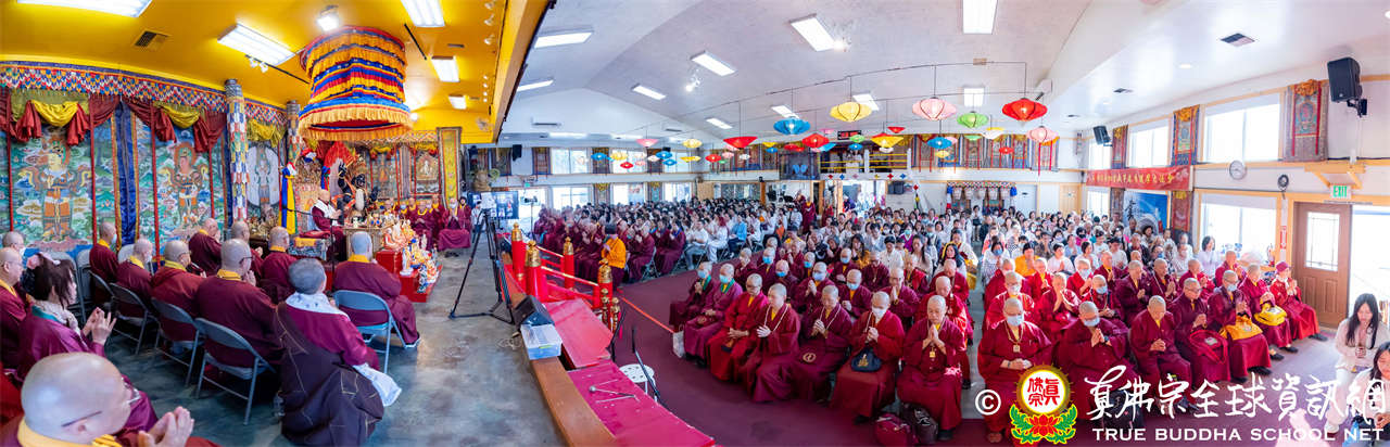 法王開示畢,衆人報以熱烈掌聲感謝法王。接著法王下座與線上弟子互相問候,並為與會大衆賜授大白傘蓋佛母法灌頂。法會至此圓滿結束。