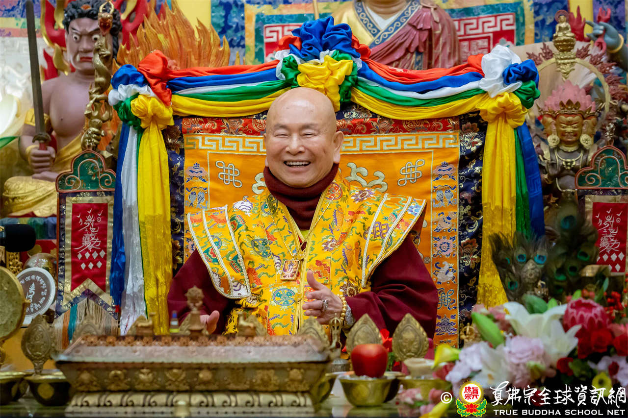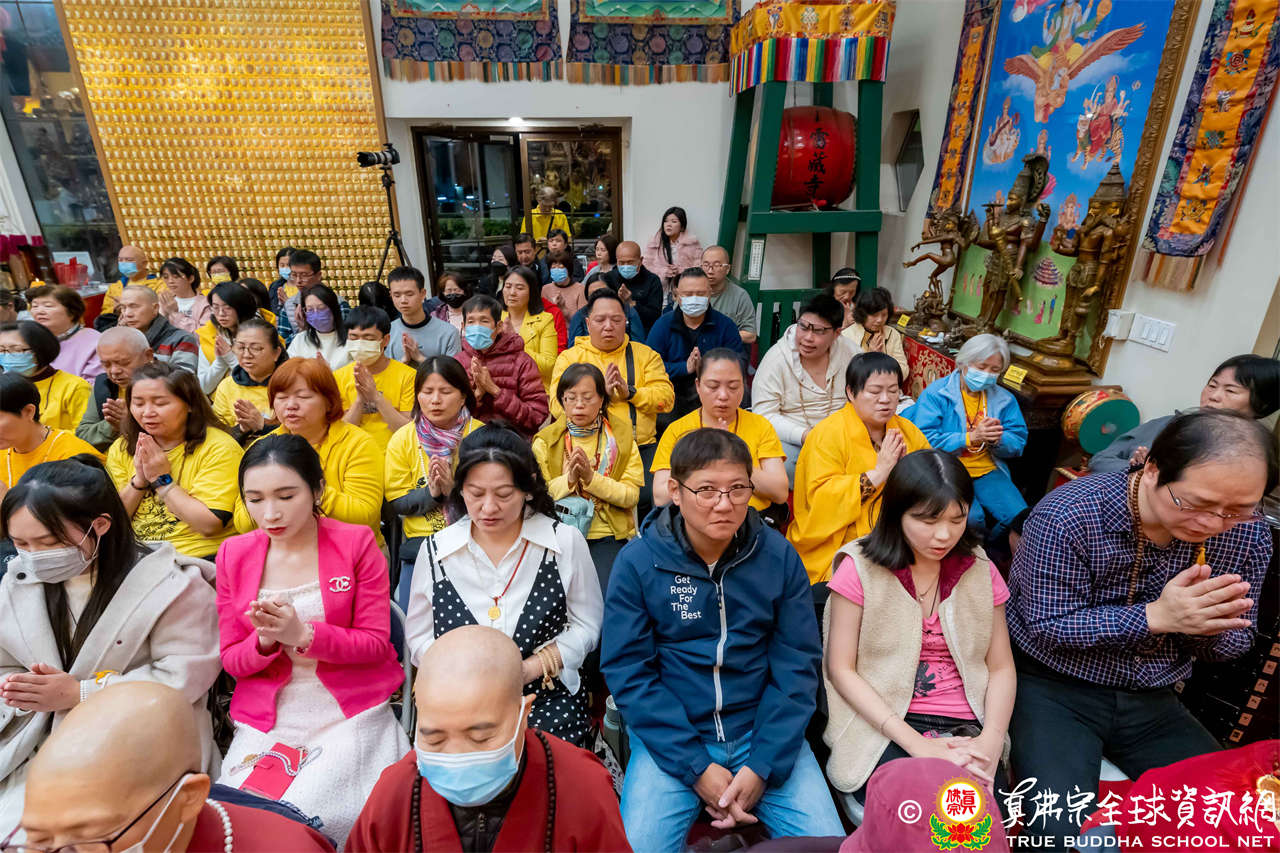 2025年10月18日聖尊蓮生活佛盧勝彥於西雅圖雷藏寺主持地藏王菩薩本尊法的同修,隨後為一對新人蓮花明亮與蓮花誼茵做福證,在與會大眾的見證與祝福之下,一切吉祥圓滿。