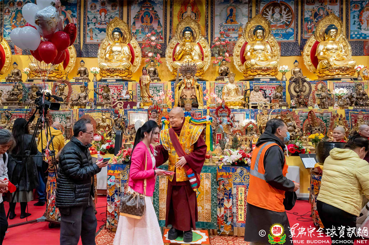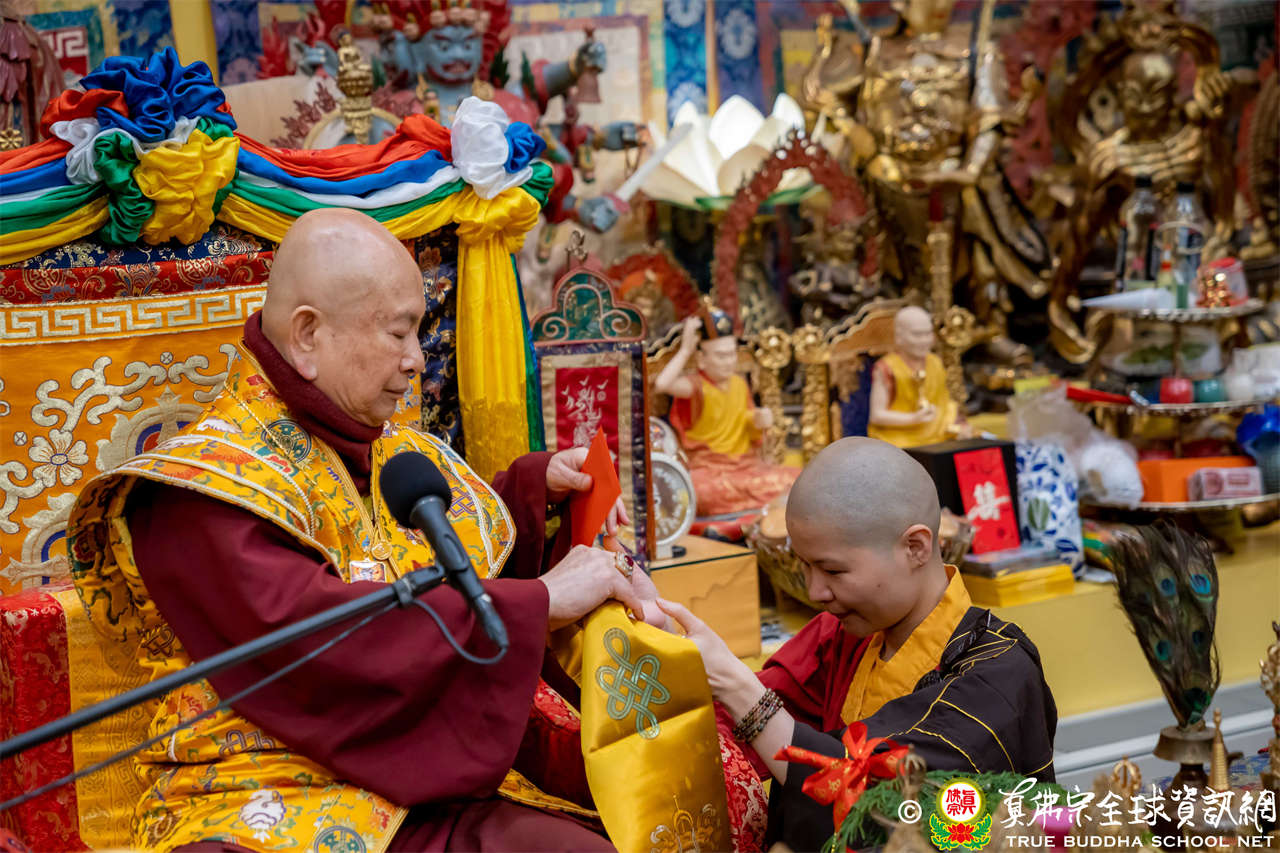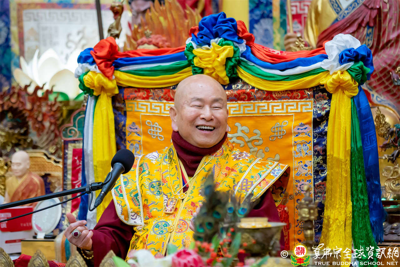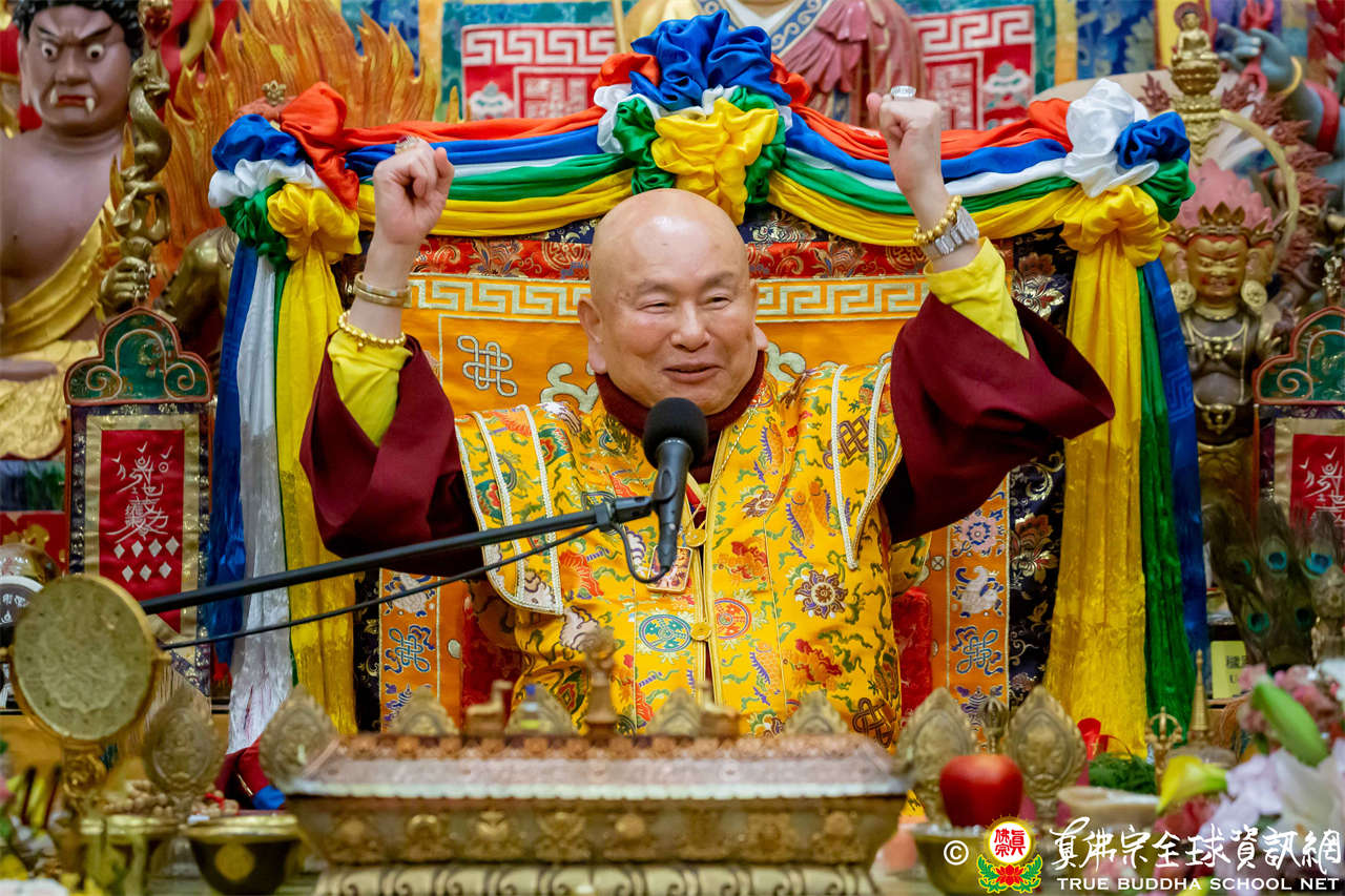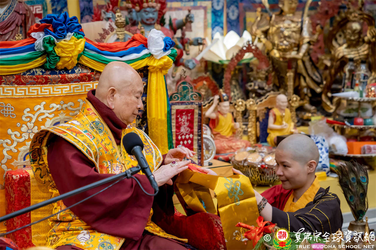 在殊勝珍貴的法語開示之後,聖尊為新皈依者進行皈依灌頂,並以拂塵加持與會大眾,法喜充滿。