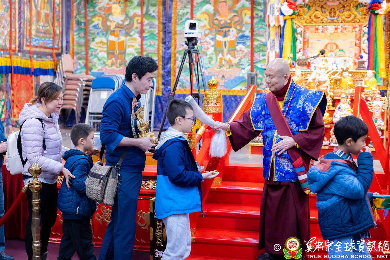法王開示畢,衆人報以熱烈掌聲感謝法王。接著法王下座與線上弟子互相問候,並為與會大衆賜授藥師佛法灌頂。法會至此圓滿結束。
