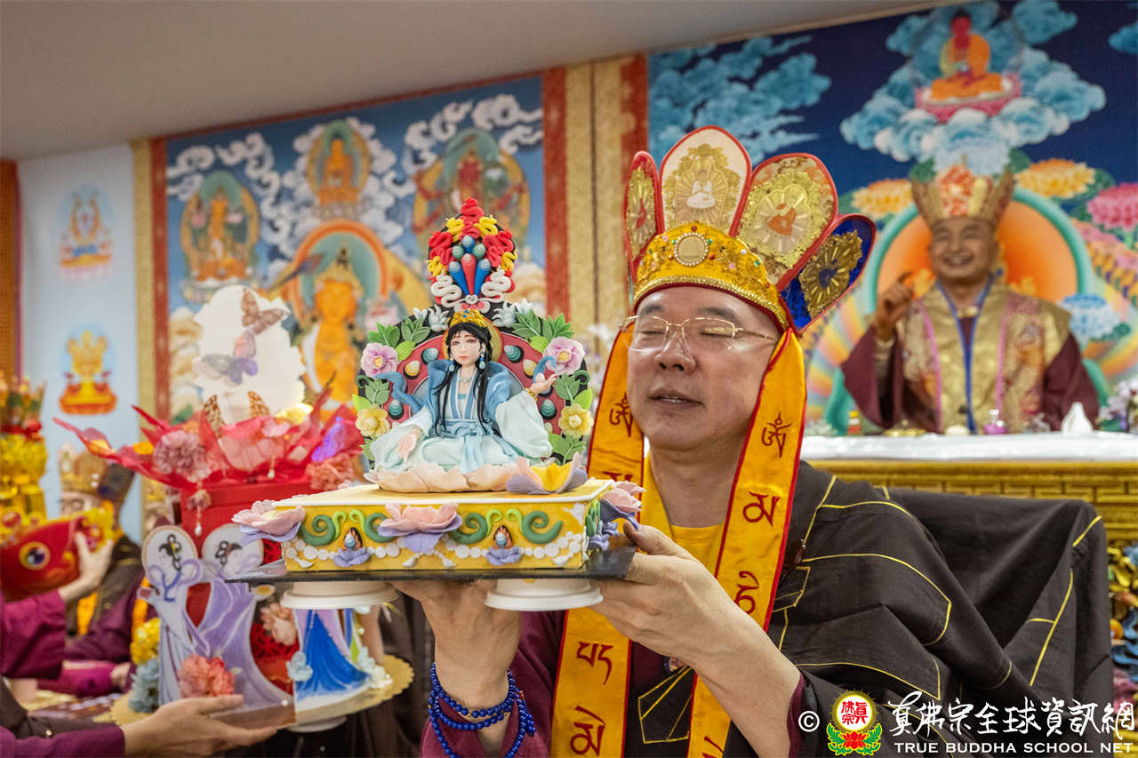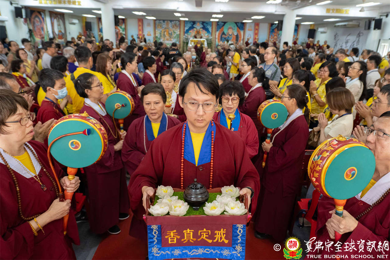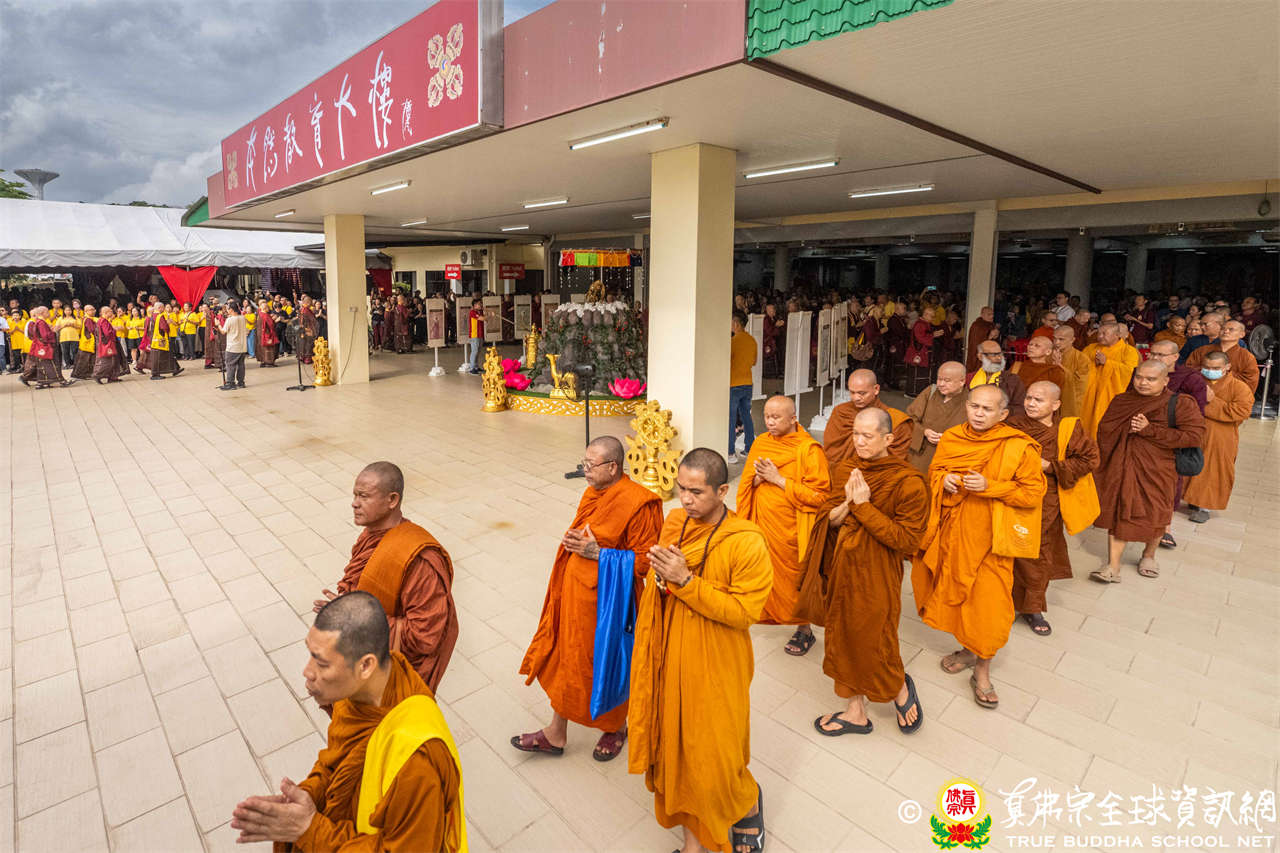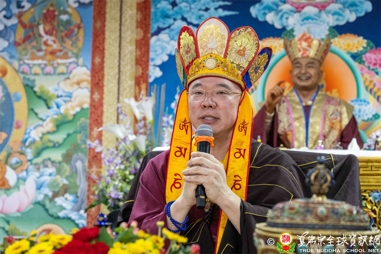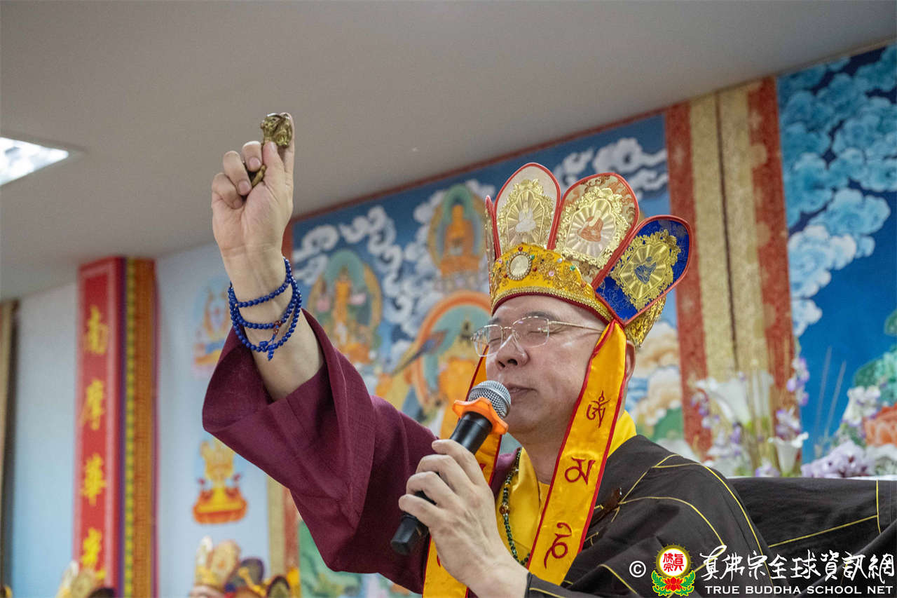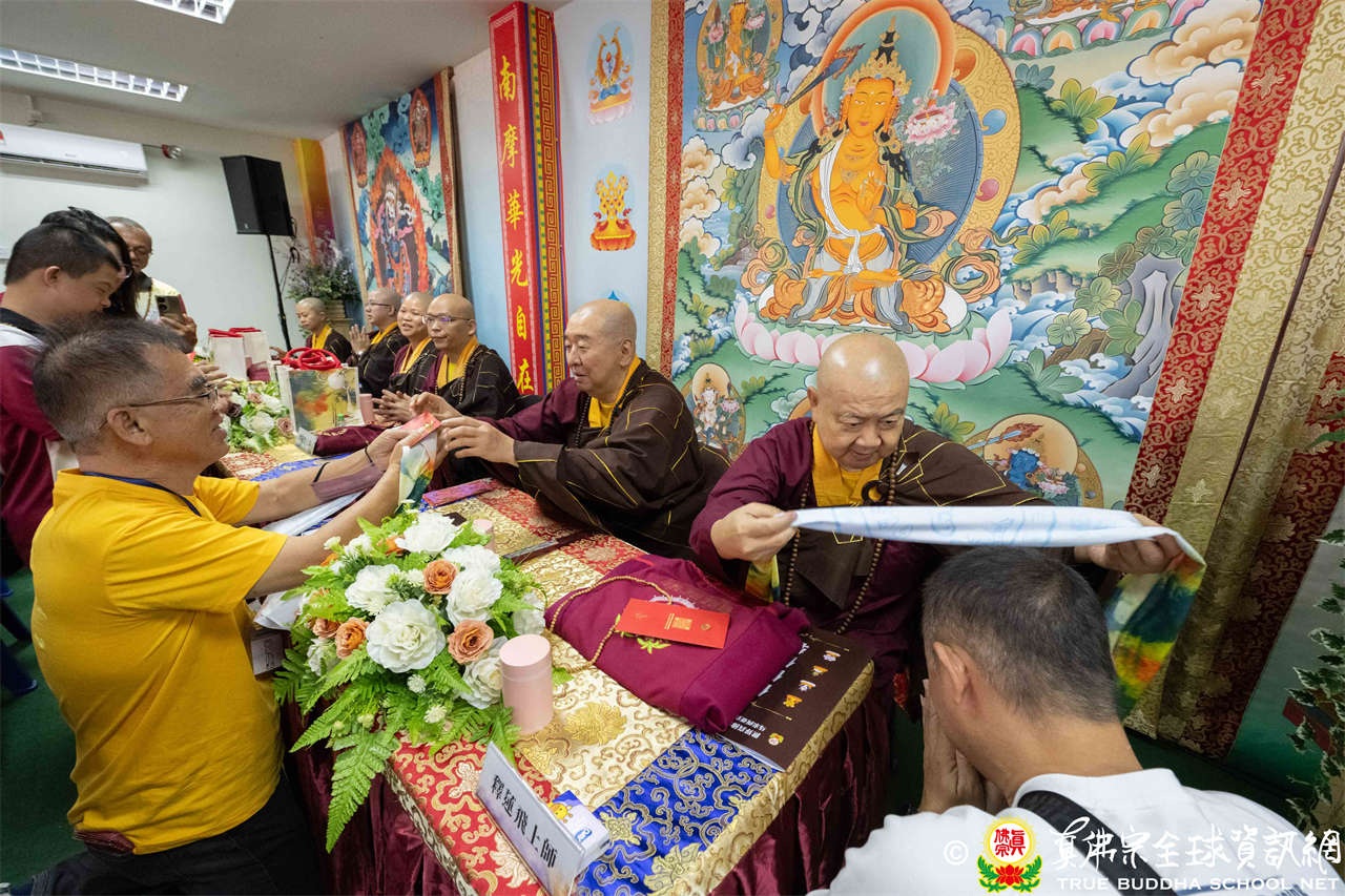 供僧大會依循《真佛宗供僧儀軌》肅穆進行,由長老釋蓮栽上師代表根本上師聖尊蓮生活佛盧勝彥納受信眾供養,並代表供養住世羅漢賓頭盧尊者。全體真佛弟子齊聲念誦《請佛住世祈願文》,祈請根本上師常住世間、永轉法輪;現場亦有南傳僧人持誦巴利文《祈禱文》,北傳僧人念誦《大悲咒》及《心經》。隨後,眾同門善信向僧眾敬獻哈達與供養,並由釋蓮栽長老開示佛法,供僧大會圓滿。