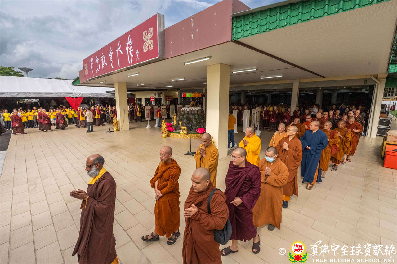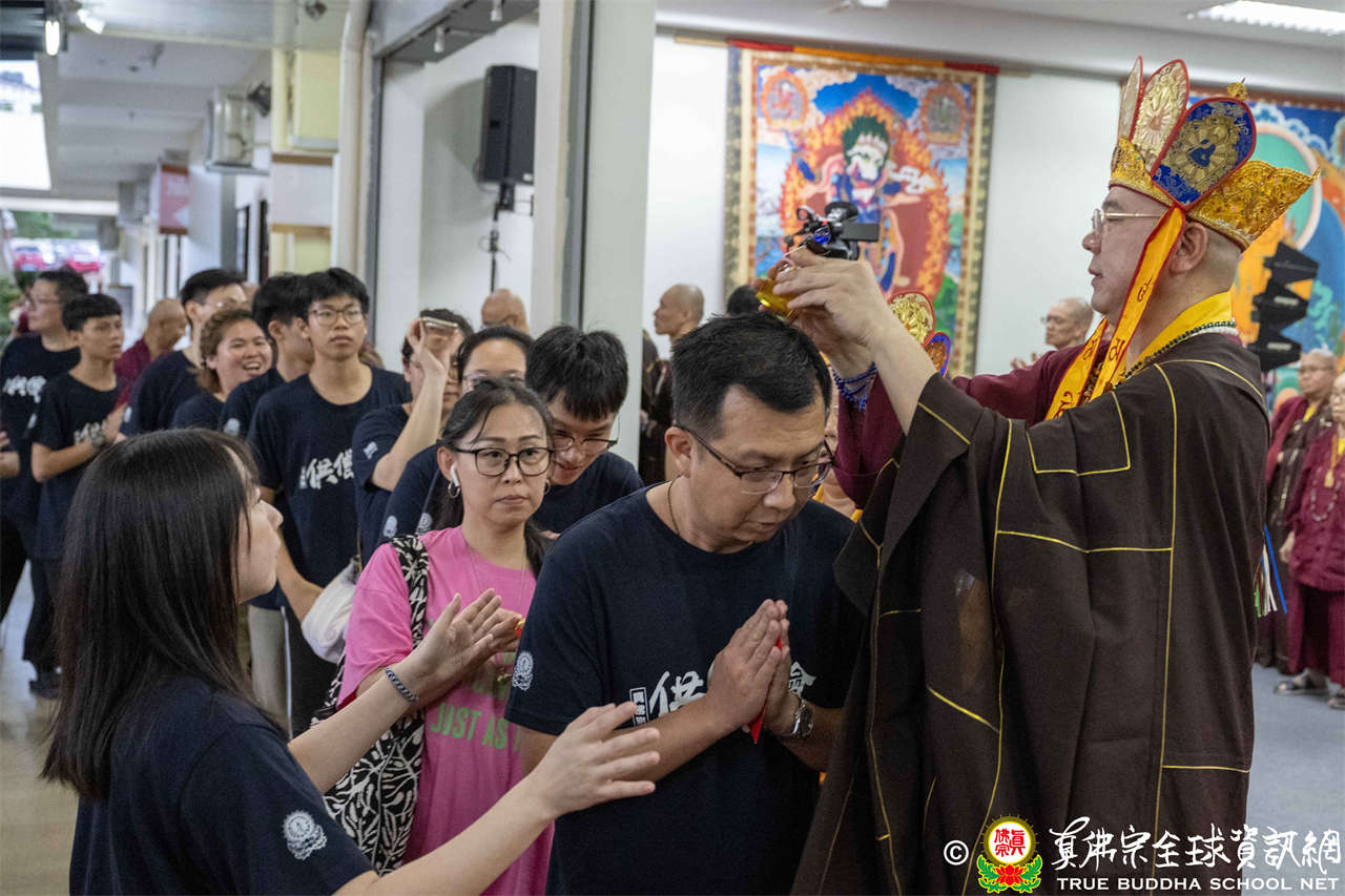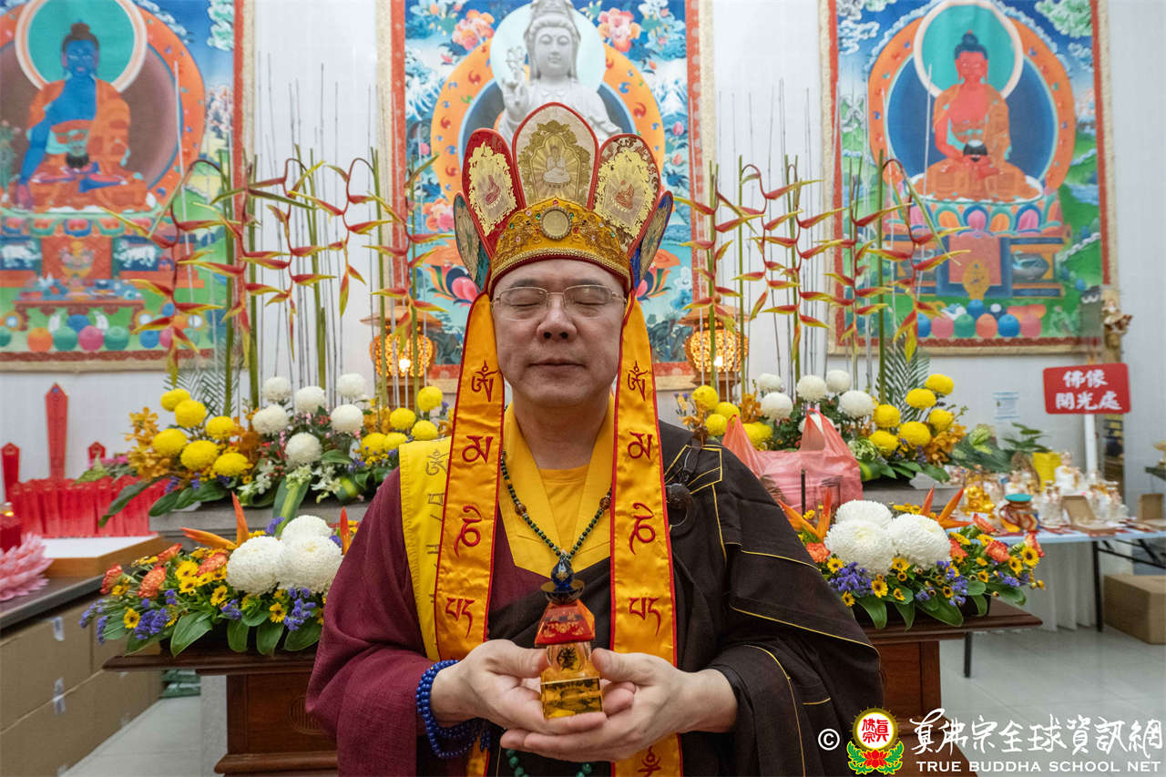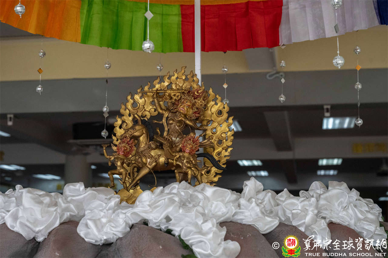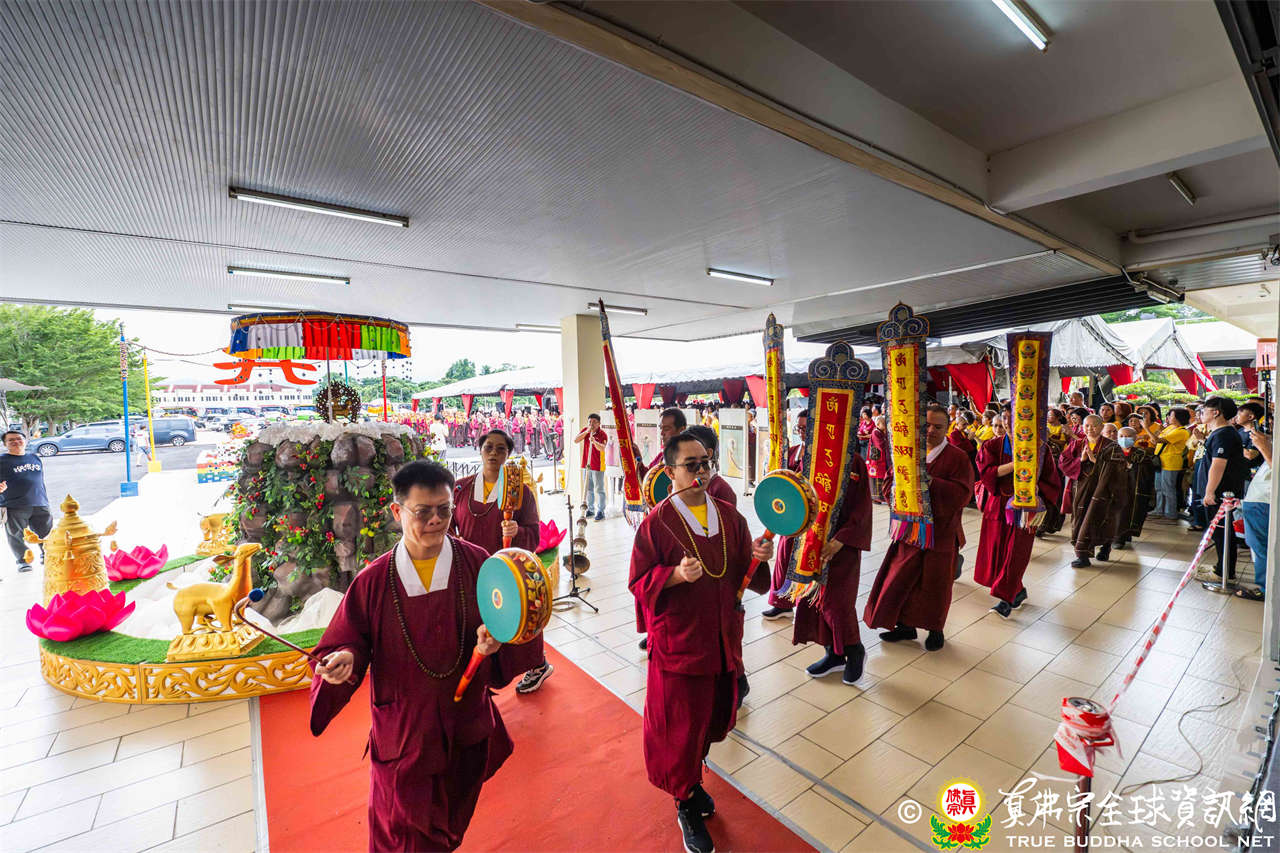供僧大會依循《真佛宗供僧儀軌》肅穆進行,由長老釋蓮栽上師代表根本上師聖尊蓮生活佛盧勝彥納受信眾供養,並代表供養住世羅漢賓頭盧尊者。全體真佛弟子齊聲念誦《請佛住世祈願文》,祈請根本上師常住世間、永轉法輪;現場亦有南傳僧人持誦巴利文《祈禱文》,北傳僧人念誦《大悲咒》及《心經》。隨後,眾同門善信向僧眾敬獻哈達與供養,並由釋蓮栽長老開示佛法,供僧大會圓滿。
