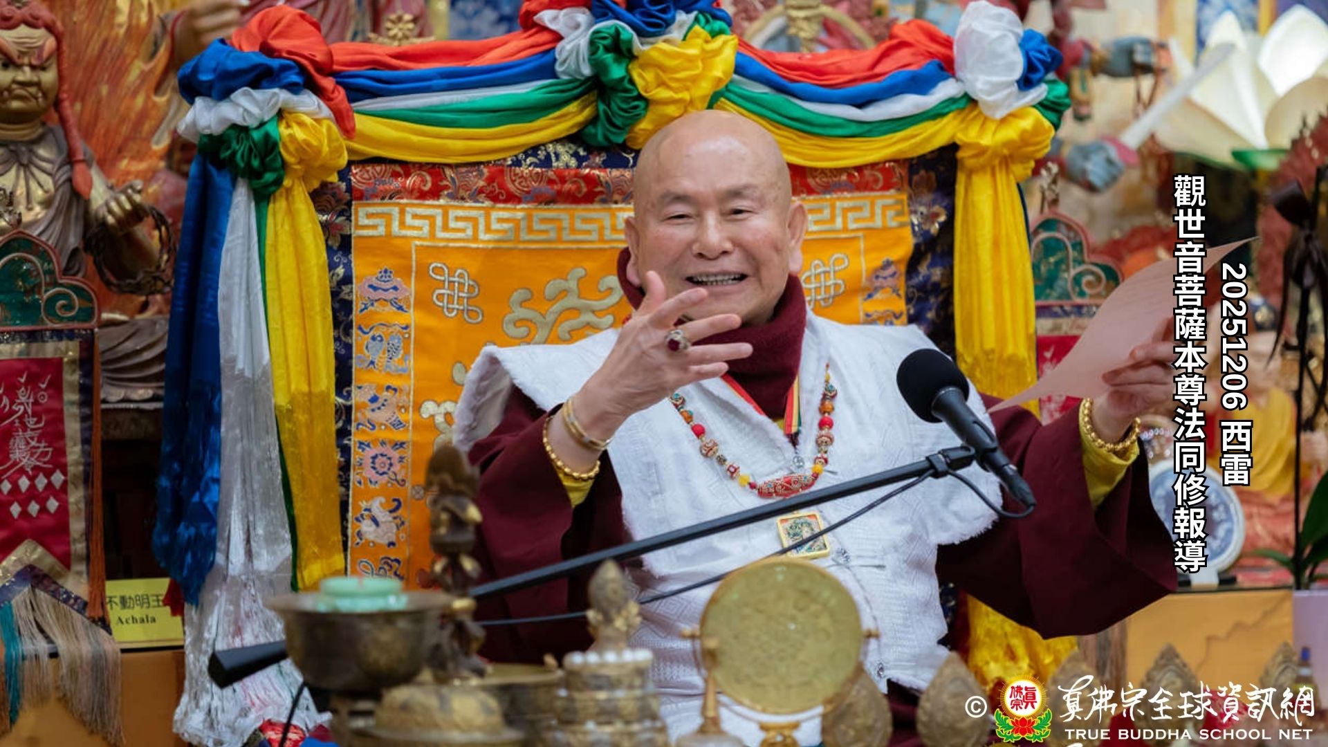 2025年12月6日西雅圖雷藏寺同修觀世音菩薩本尊法,聖尊蓮生活佛盧勝彥開示,最近世界災難頻傳,像是香港的宏福苑大火,以及許多地方淹水,像臺灣花蓮光復鄉、泰國、馬來西亞、印尼,另外還有風災、地震,盧勝彥佈施基金會當然都有在做佈施的工作,但有時候沒注意到,因此,我是想說,全世界各地的同門如果當地發生災難,就把要供養師尊的錢,直接捐給當地負責救災的單位,用誰的名義都可以,也可以用師尊或道場的名義,然後拿收條給我看就好了。以後就這樣子做,把供養師尊的錢,就不用拿來供養師尊,直接把這些錢都供養給那些災民。