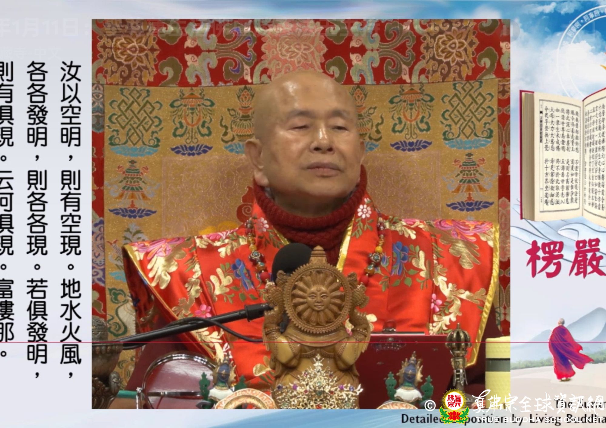 聖尊解釋經文:因爲虛空有光明,虛空就出現。地水火風本身就在虛空裏面,各個有各個的作用,但是全部都可以出現。爲何全部都可以出現?