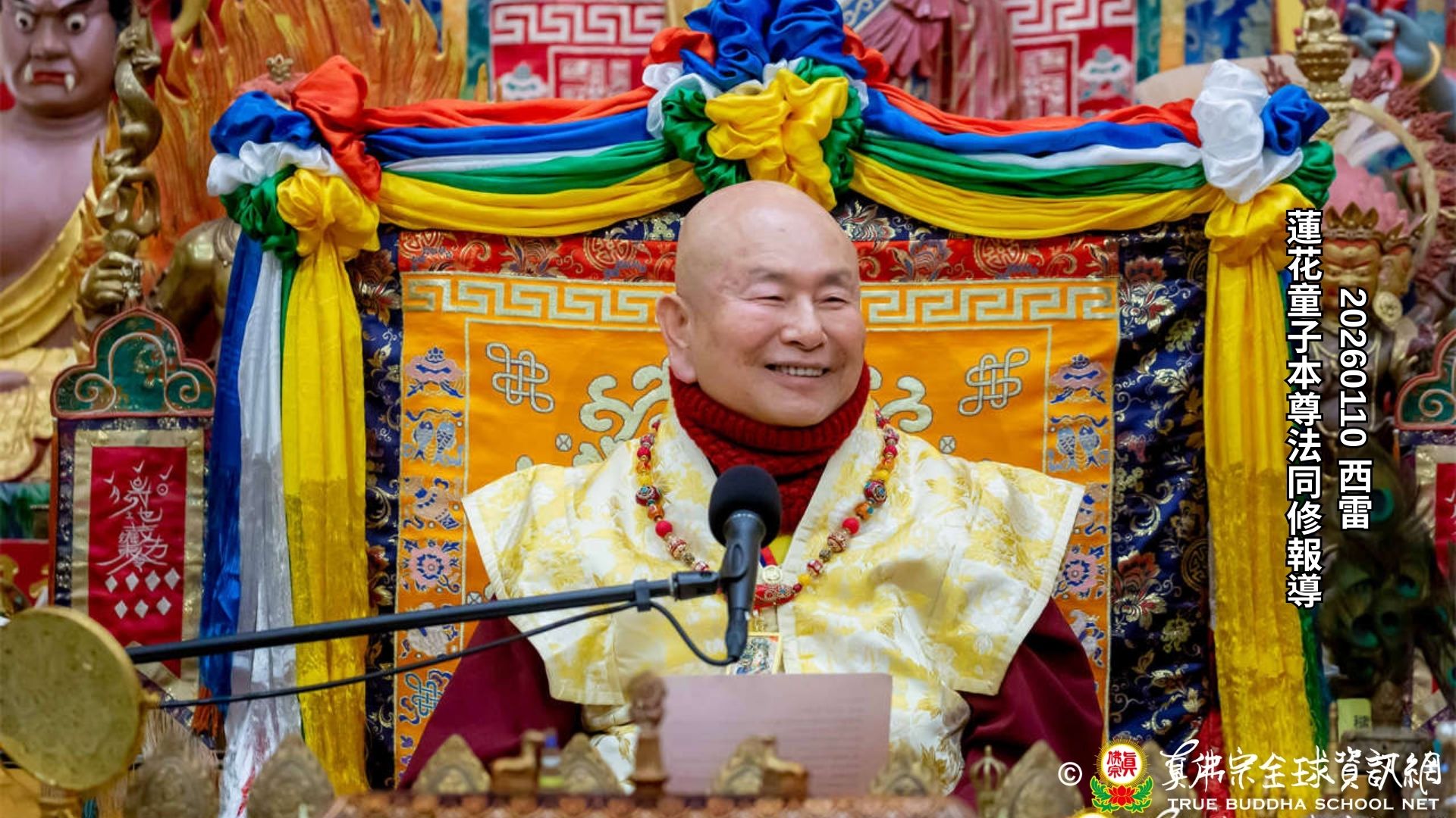 2026年1月10日,四眾弟子齊聚西雅圖雷藏寺,參加本週的蓮花童子本尊法同修,聆聽蓮生活佛盧勝彥的殊勝法語開示。與會大眾歡欣踴躍,同霑法喜,共沐佛恩。