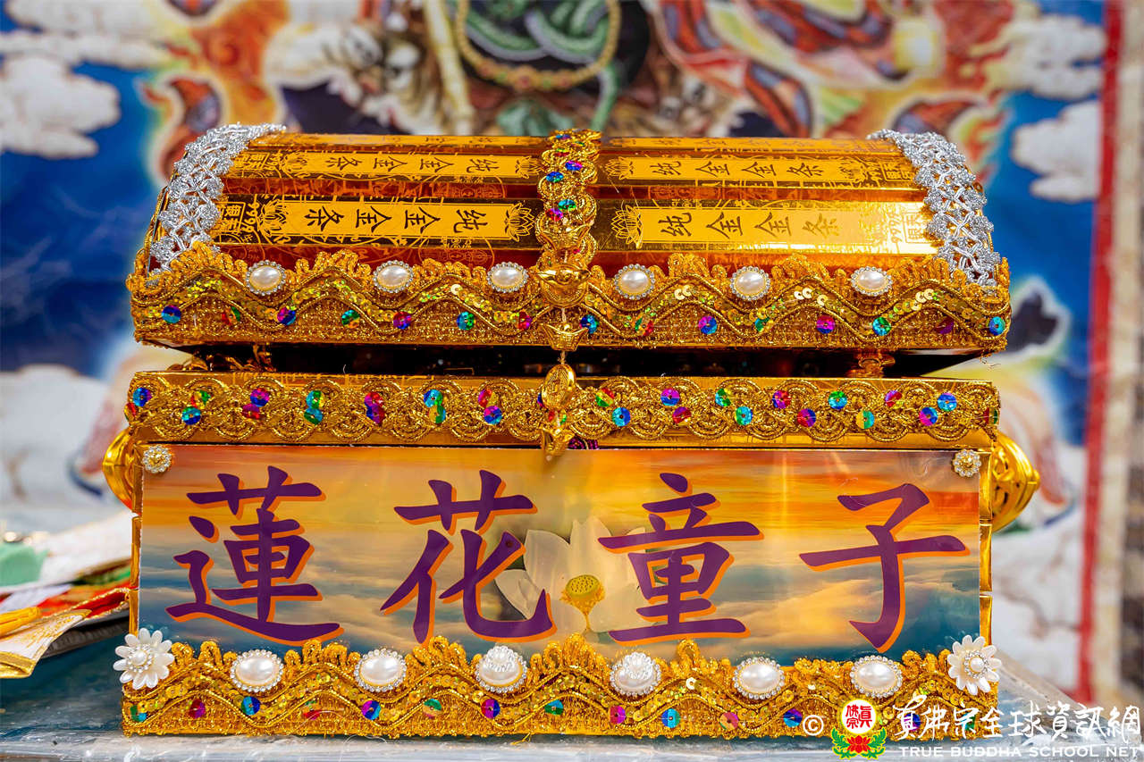 此外,法王亦引述明代經典《封神榜》中的記載。書中描述阿彌陀佛曾派遣大白蓮花童子下凡收拾龜靈聖母的遺骸,卻因童子疏忽,導致極樂世界原本的「十二品」被食去三品,演變為後世熟知的「九品蓮華」。