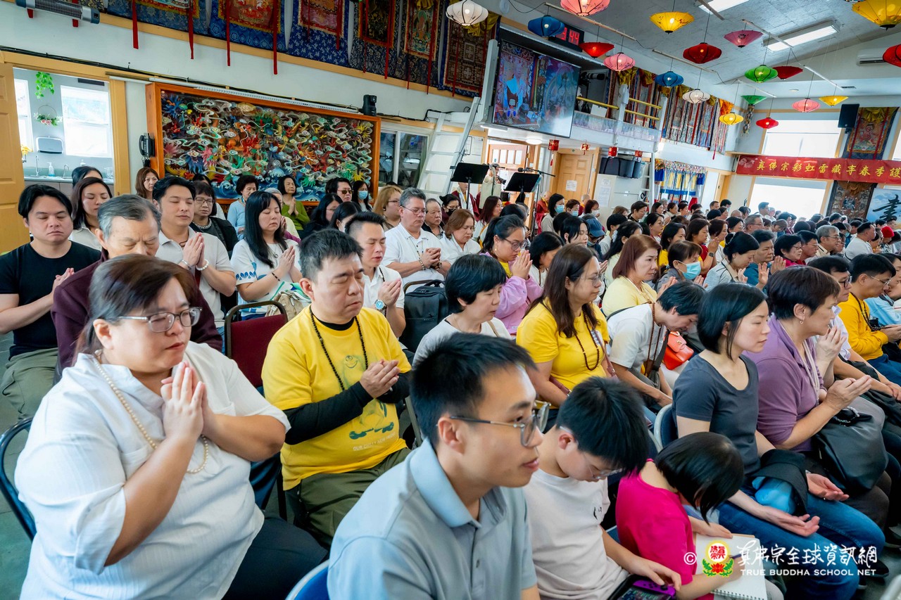 2026年4月19日,蓮生法王蒞臨彩虹雷藏寺,主壇殊勝的不空羂索觀音息災祈福超度護摩法會。適逢今日是師母陽曆生日,開示前,法王慈悲帶領大眾齊唱印尼版生日歌,現場洋溢著溫馨歡樂的氣氛,眾弟子同聲祝賀師母生日快樂。