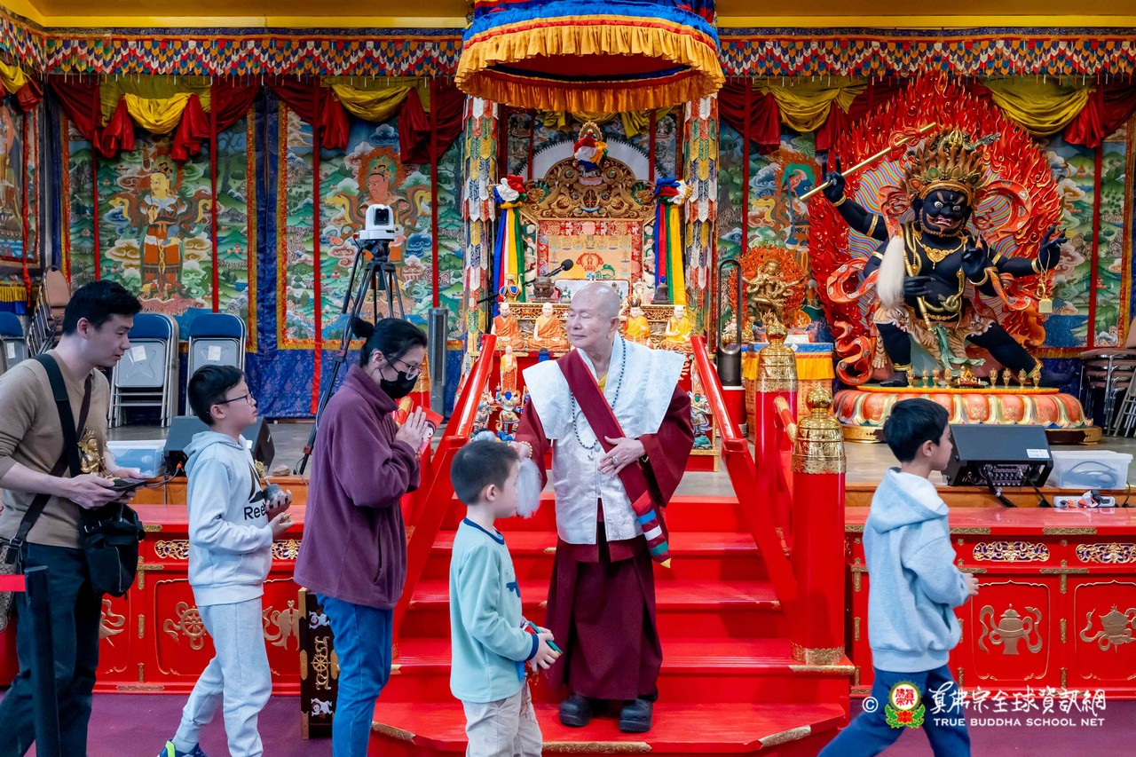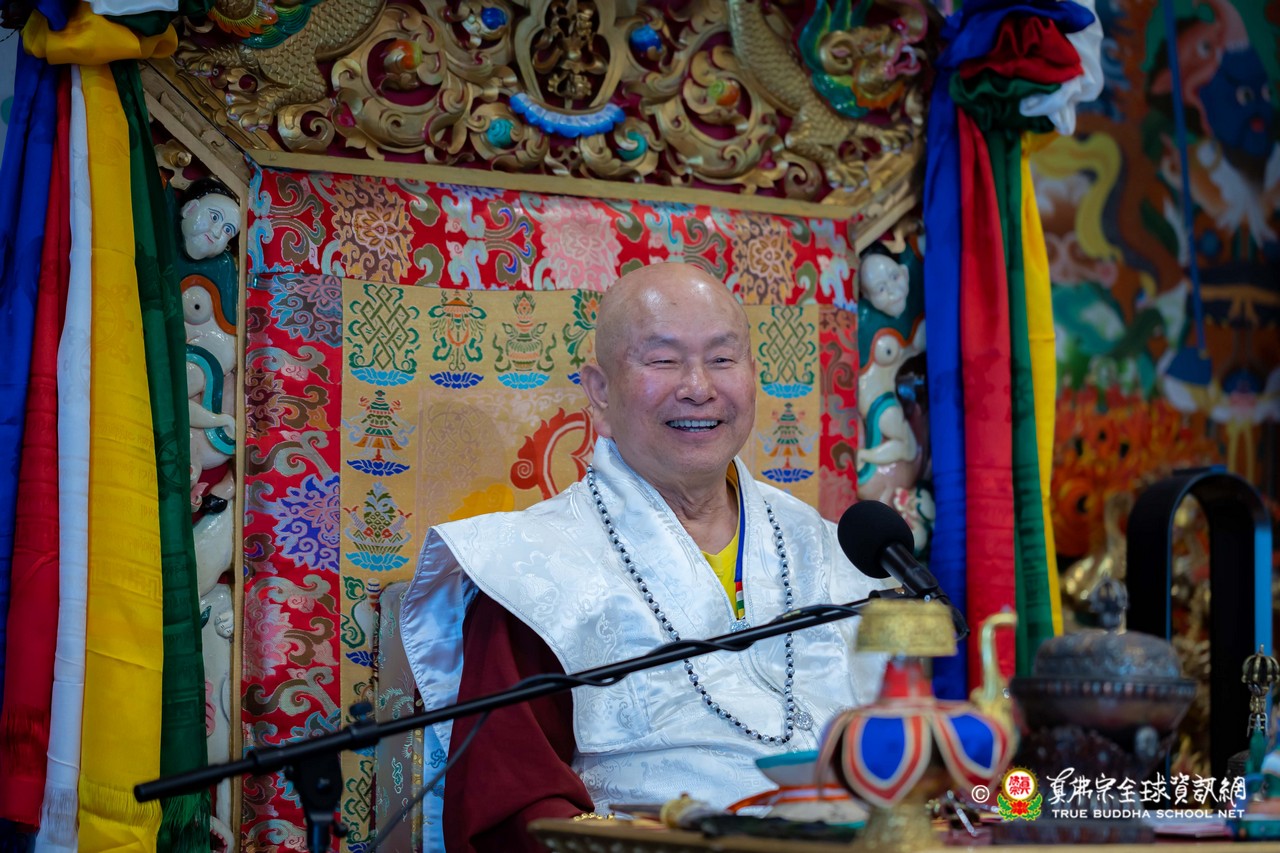 隨後,法王談及與瑤池金母深厚殊勝的因緣。法王開示,瑤池金母是自己第一位本尊,追隨至今已五十餘年。金母最是慈悲,同時也是最嚴厲的本尊,慈悲中具威德,嚴厲中含教化,時時引導弟子走向正道。