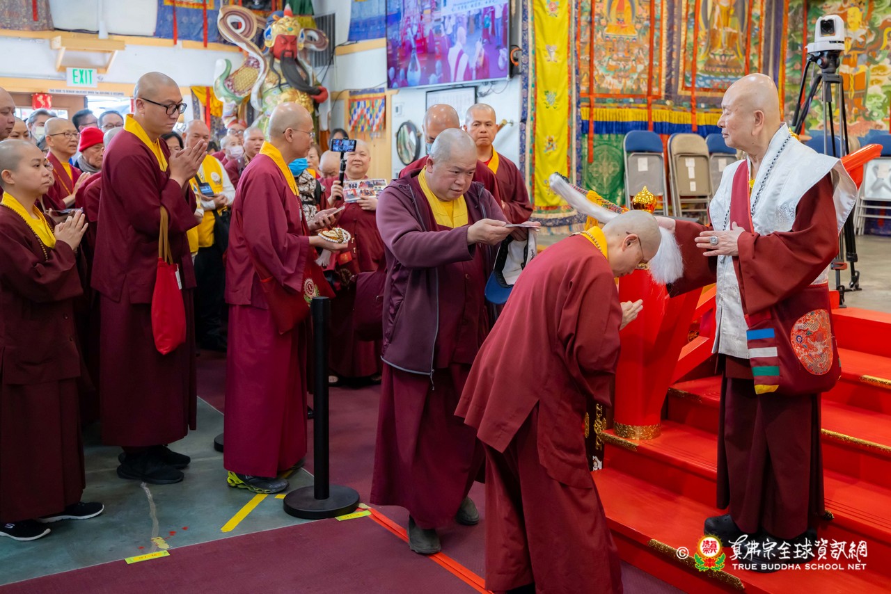 法王接著讚歎今日法會播放的不空羂索觀音咒音,並憶起前一晚西雅圖雷藏寺所播放的地藏王菩薩咒音,以及蓮花童子心咒音樂,皆出自巴西一對母女弟子之手——阿芳助教與其女兒可盈師姐所精心製作。法王表示,這些咒音極具感染力,能深深觸動人心,令聞者生起清淨與感動。