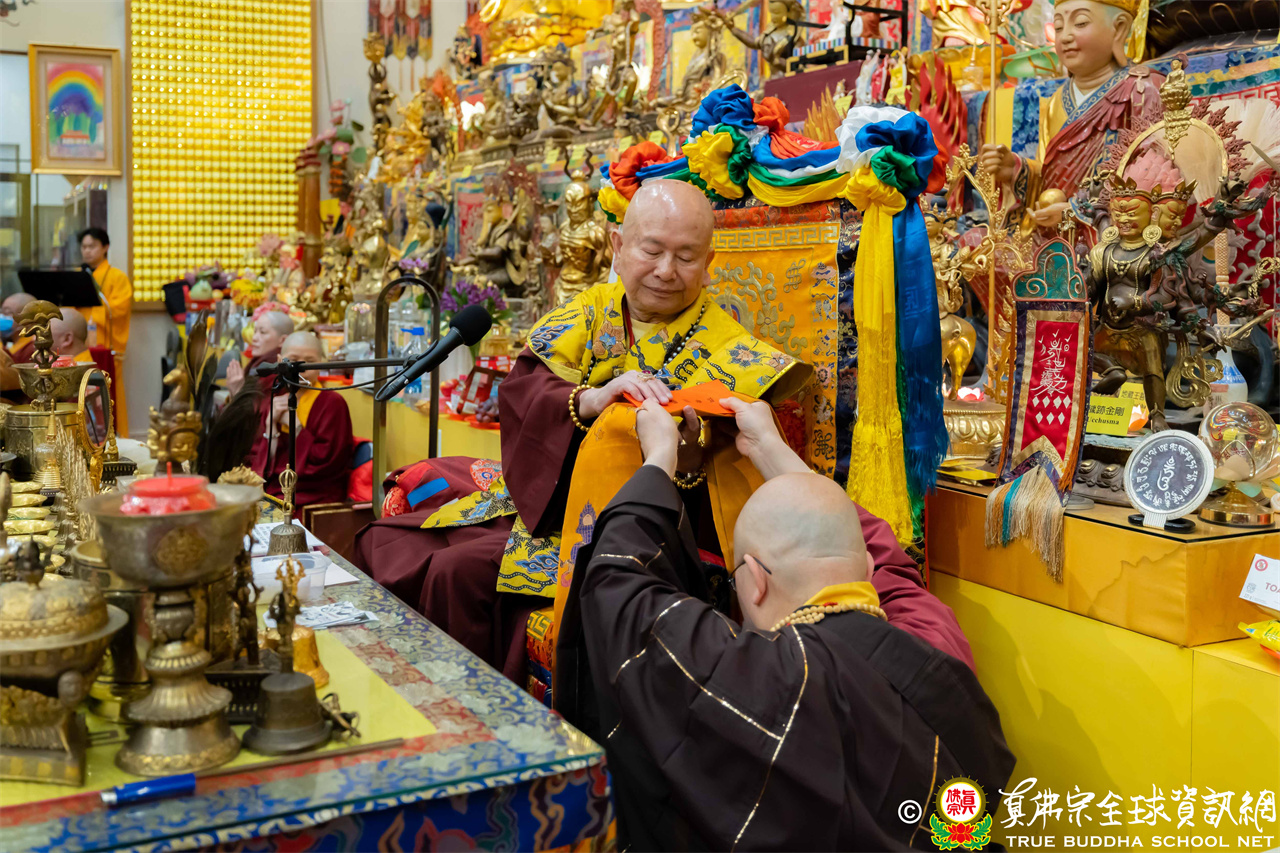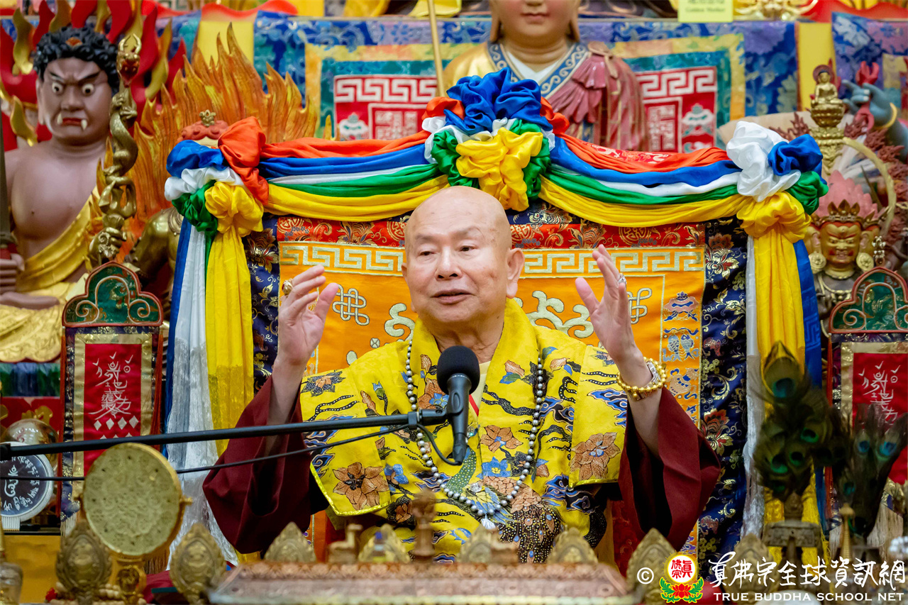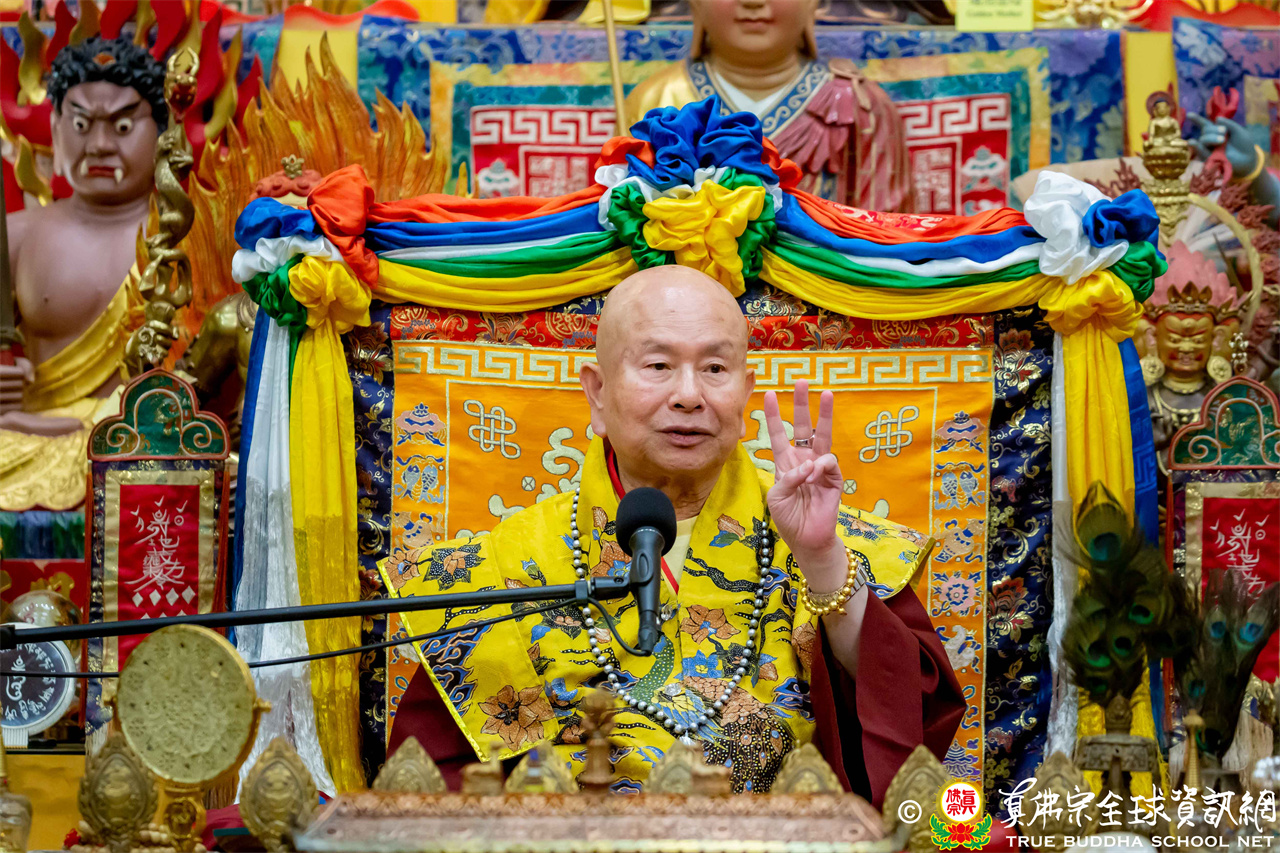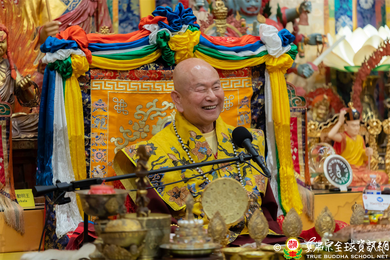 聖尊精闢寶貴的法語開示後,加持大悲咒水、開光佛像,最後持拂塵一一加持與會大眾。