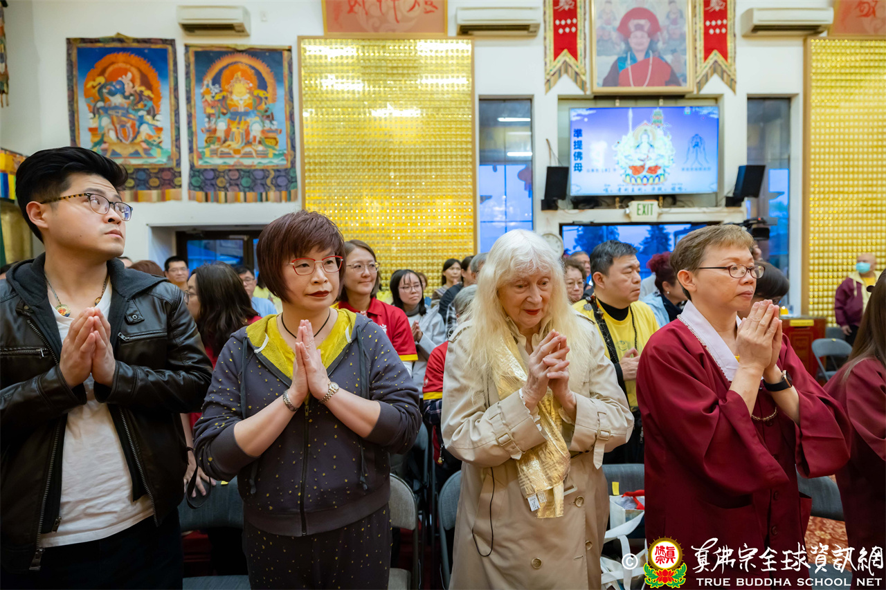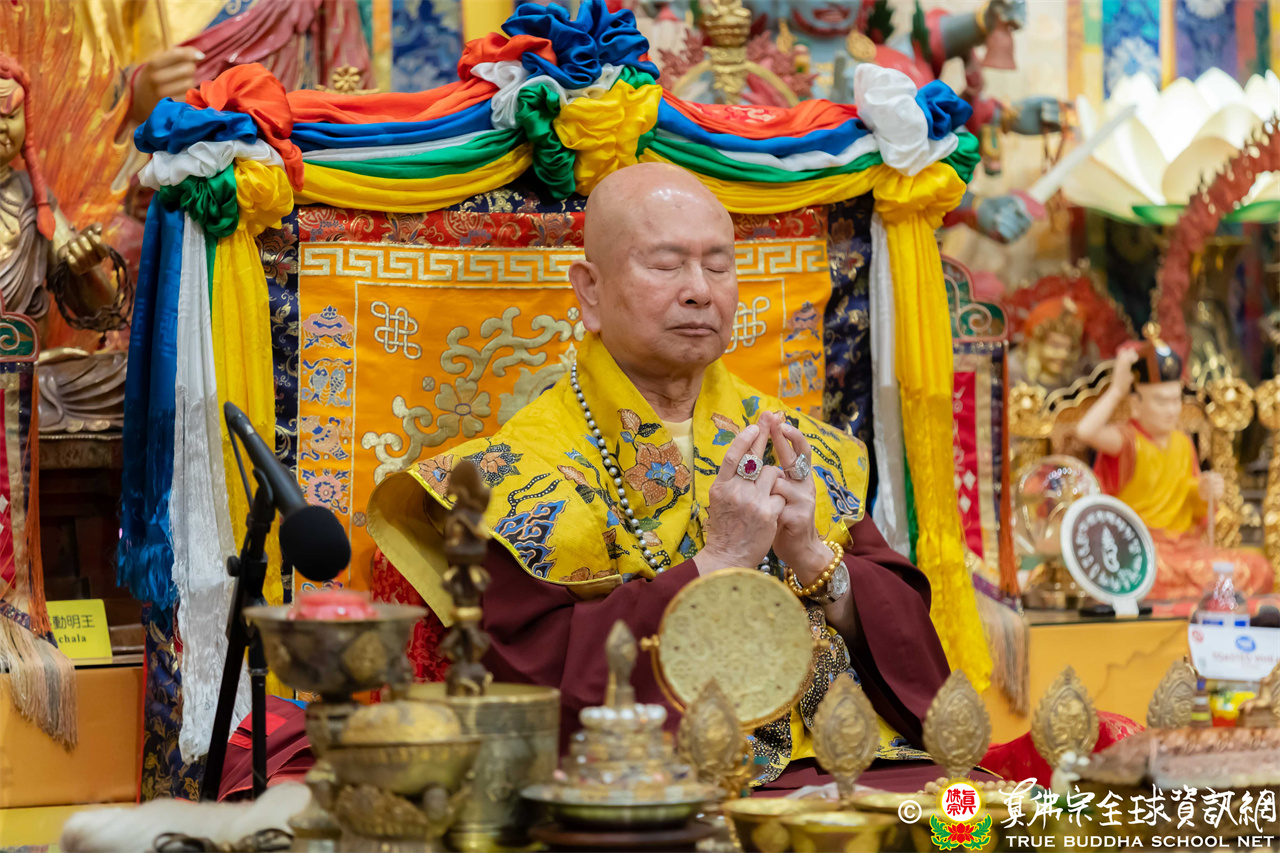 2026年4月25日週六晚上8時,美國西雅圖雷藏寺大雄寶殿裡,聖尊蓮生活佛盧勝彥帶領來自世界各地的四衆弟子同修準提佛母本尊法並講授《大佛頂首楞嚴經》。